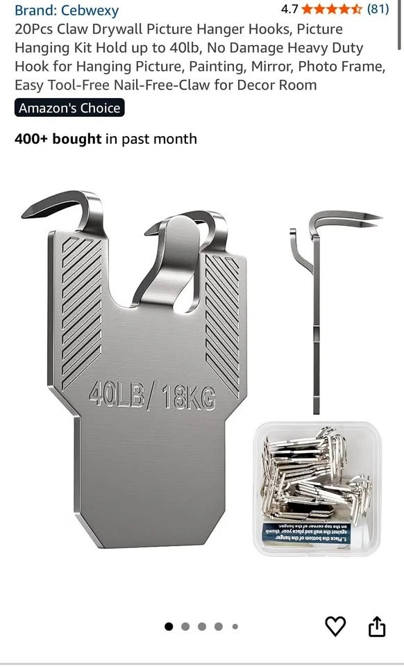 Buy & SellDrywall Photo Hanger ClipsDrywall Photo Hanger Clips$10Box of drywall clips to hang photos. New, never used.WHERE TO MEETGraydon hallView MapSELLERverifiedDaniGraydon Hall1306 reviews0 chats·0 favorites·2 viewsSEND CHAT TO SELLERHi Dani! I’m interested in your listing.Hi Dani! I’m interested in your listing.Get the Karrot app to chatSign In to chat