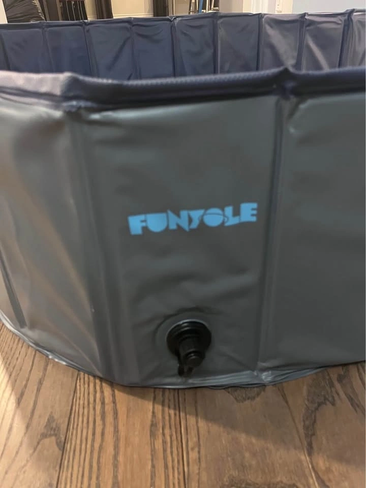 Durable & Safe: Dog pool is made of extra-tough and anti-scratch PVC material, 0.55cm high-strength compression fiberboard, not easy to collapse and get scratched by dogs. And the unique non-slip bottom design makes your pets and kids safer while bathing or playing. Portable and Foldable: Pet swimming pool 48 inches across.