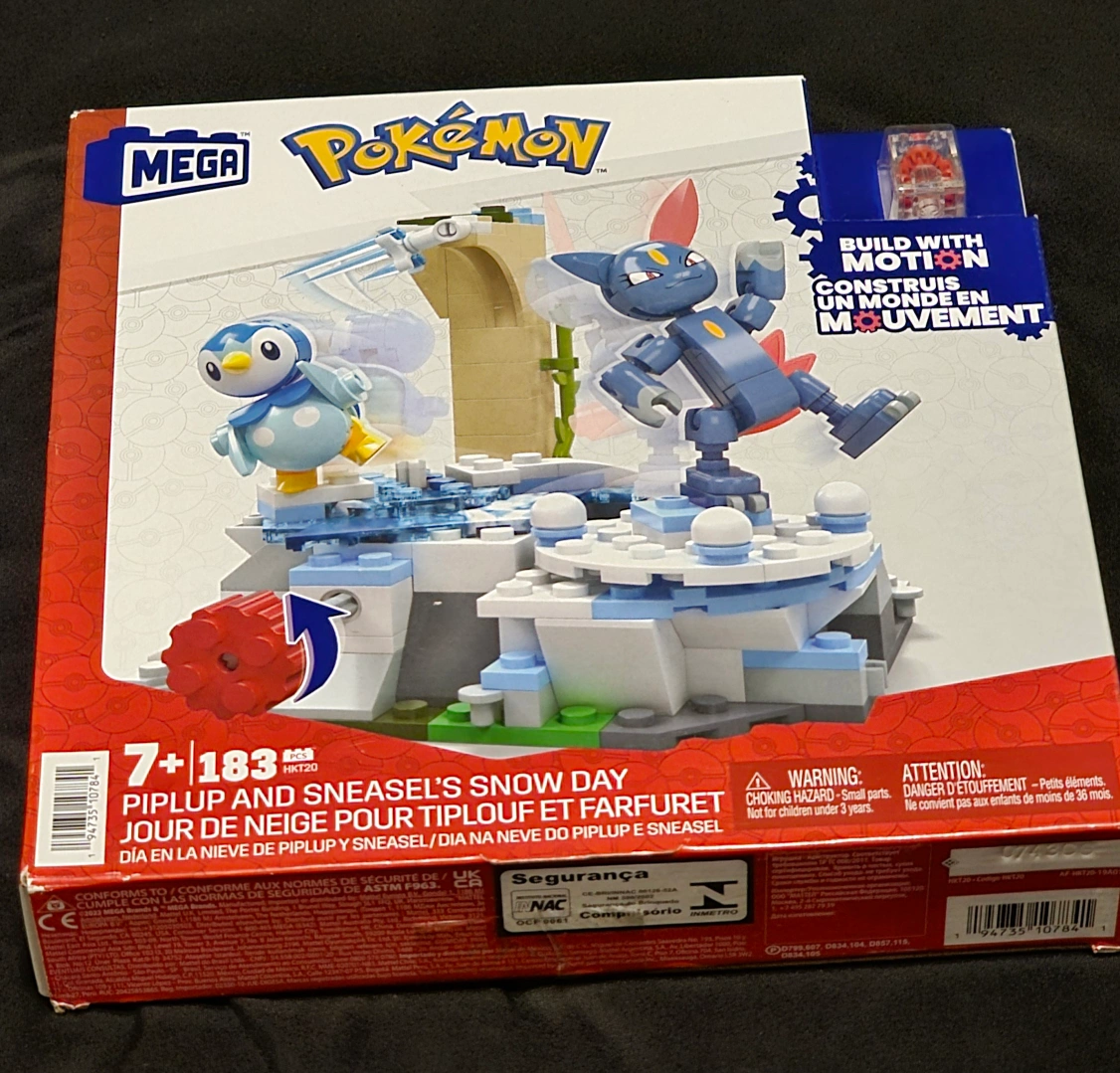 Build your own Pokémon snow day adventure with this Mega set! Featuring Piplup and Sneasel, this set lets you construct a snowy scene with motion. Perfect for Pokémon fans and building enthusiasts alike