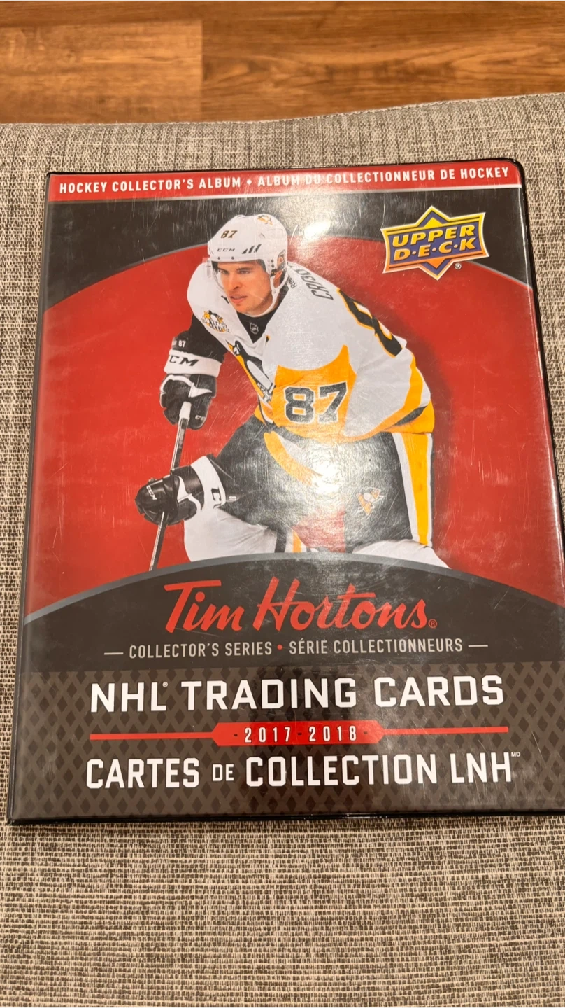 Collection of Tim Hortons NHL trading card collector albums. These albums are designed to hold your hockey cards from the 2017-2018, 2018-2019, 2019-2020, and 2021-2022 seasons. Keep your collection organized and protected!