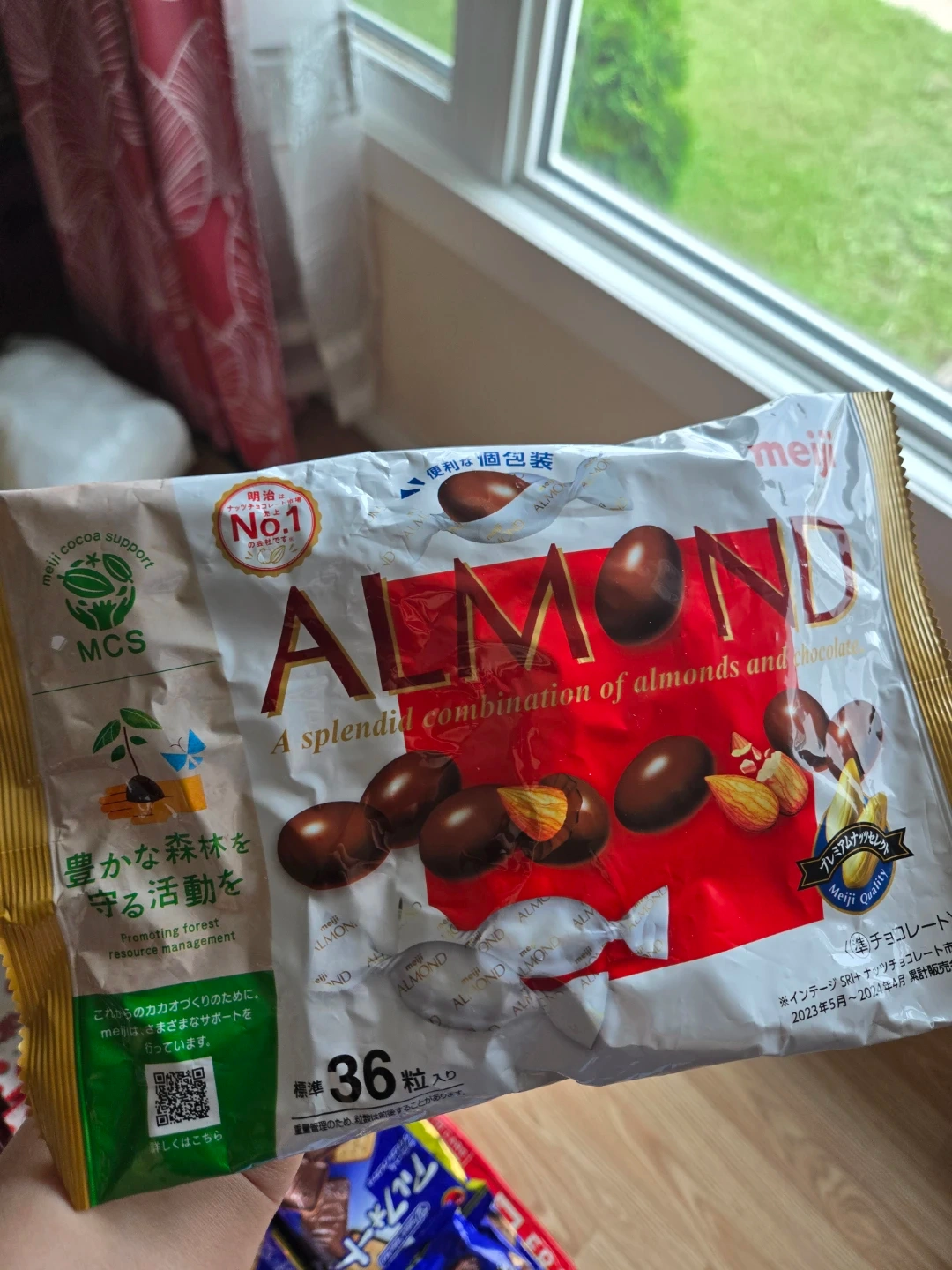 10Selling a bag of Meiji Almond chocolates. It contains 36 individually wrapped pieces, perfect for a quick snack. These chocolates feature a splendid combination of almonds and chocolate. Enjoy!