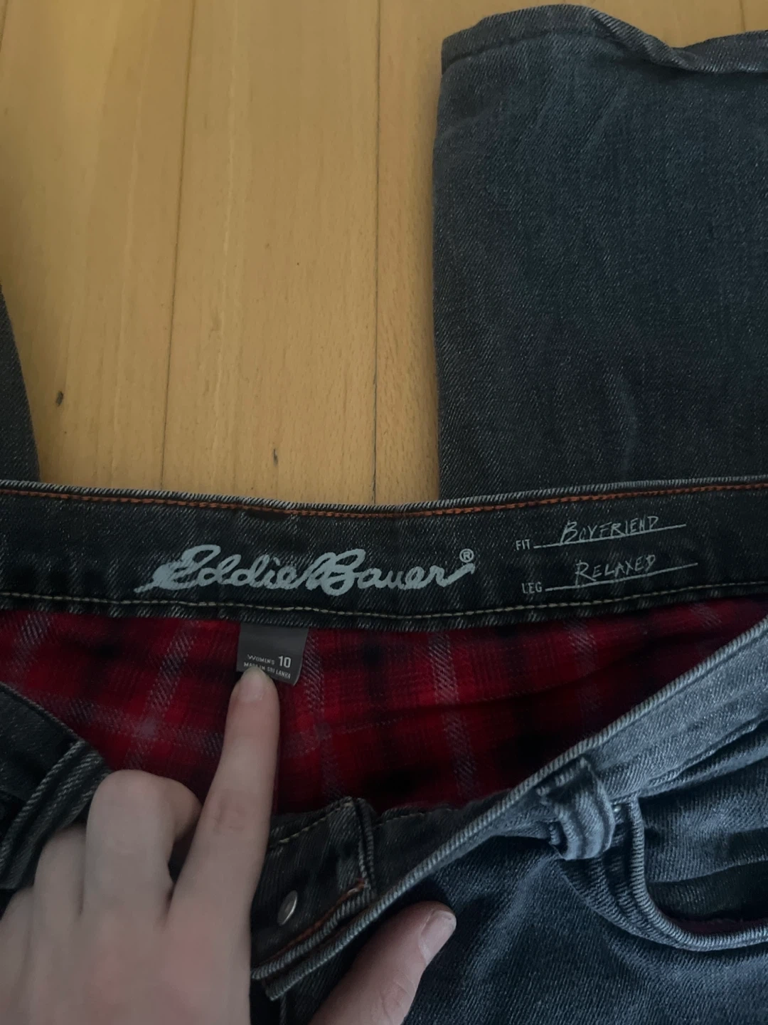 Buy & SellEddie Bauer Boyfriend Fit Relaxed Leg JeansEddie Bauer Boyfriend Fit Relaxed Leg Jeans$10Eddie Bauer boyfriend fit jeans in a relaxed leg style. Size 10, charcoal wash denim. Lined with red plaid.BrandEddie BauerWHERE TO MEETCheck LocationView MapSELLERverifiedrachelBay Street Corridor49632 reviews0 chats·1 favorites·16 viewsSEND CHAT TO SELLERHi rachel! I’m interested in your listing.Hi rachel! I’m interested in your listing.Get the Karrot app to chatSign In to chat