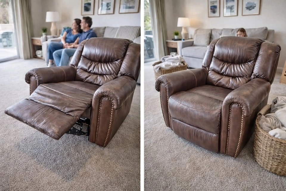 Large Brown Leather Reclining Chair – Very Comfortable