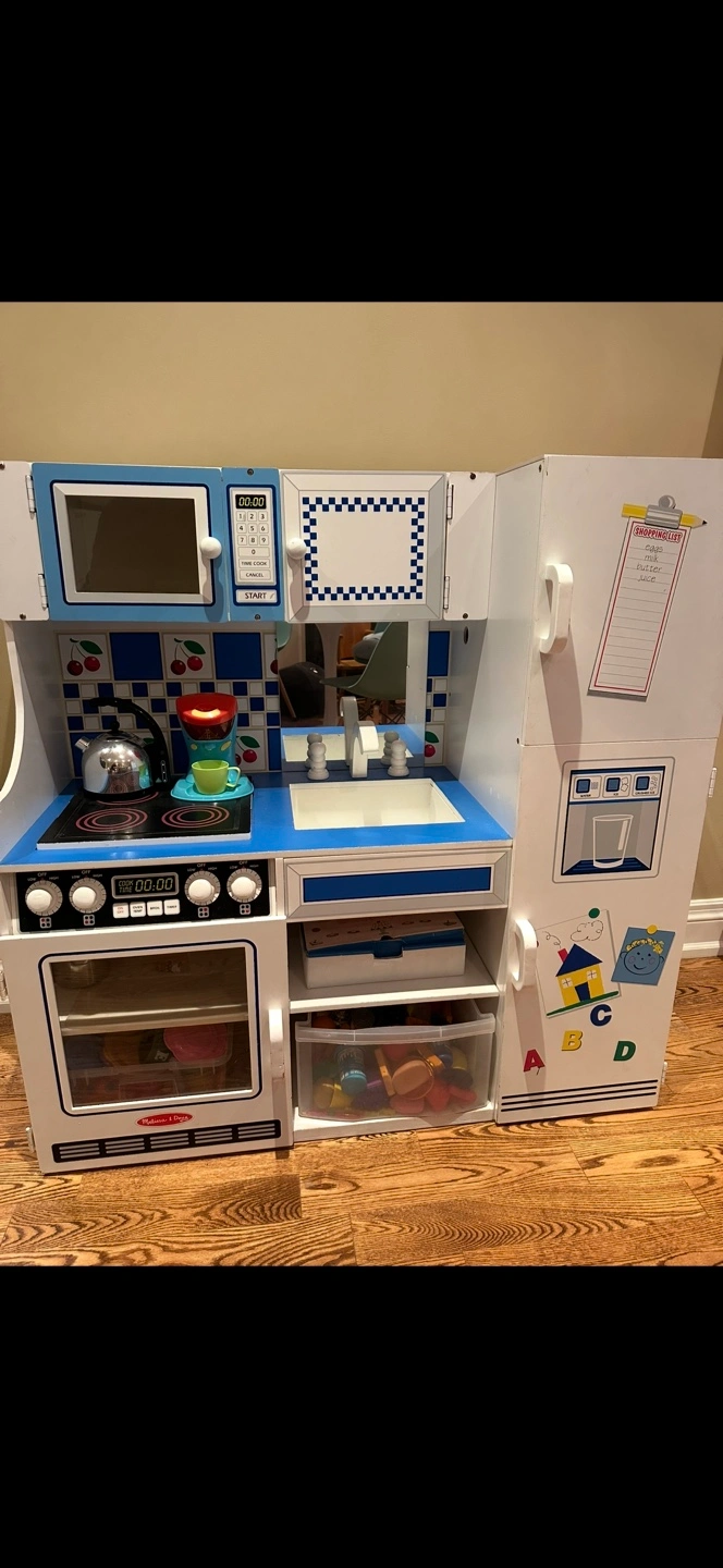 10This is a Melissa & Doug wooden kitchen play set. It comes with a variety of accessories and play food. Perfect for imaginative play!