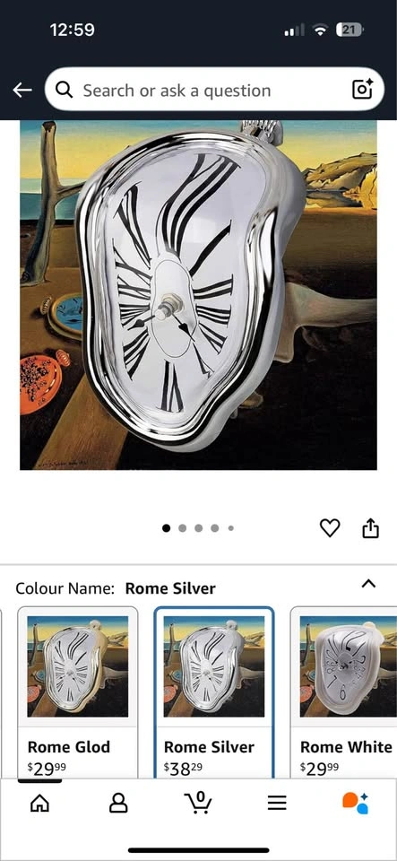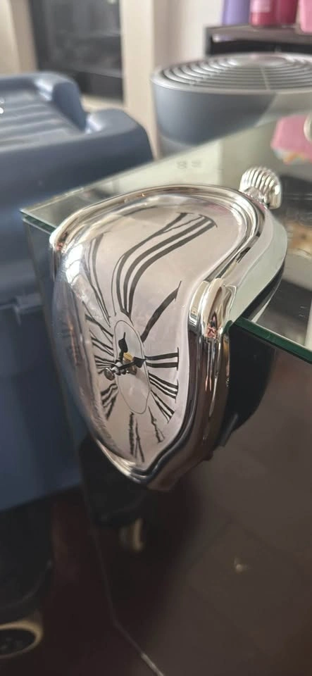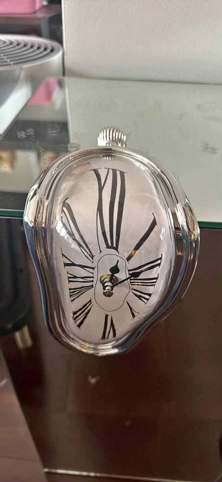 Salvador Dali inspired melting clock. Silver. Selling on Amazon for $38. Unused - just installed battery today. Pickup in Yaletown.