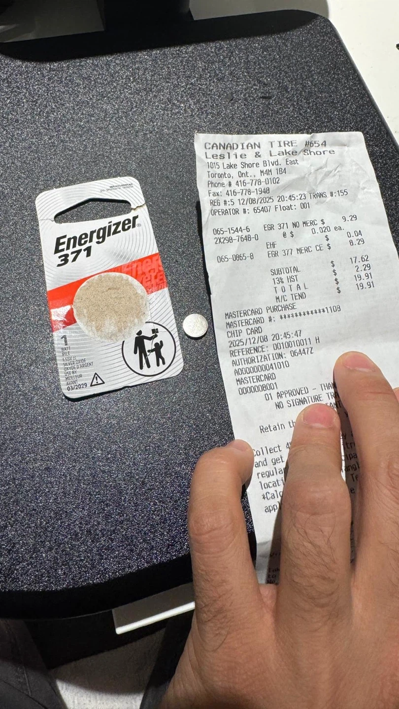 Energizer 371 button cell battery. It's a 0% Hg battery and made in Japan. The expiry date is 03/2029