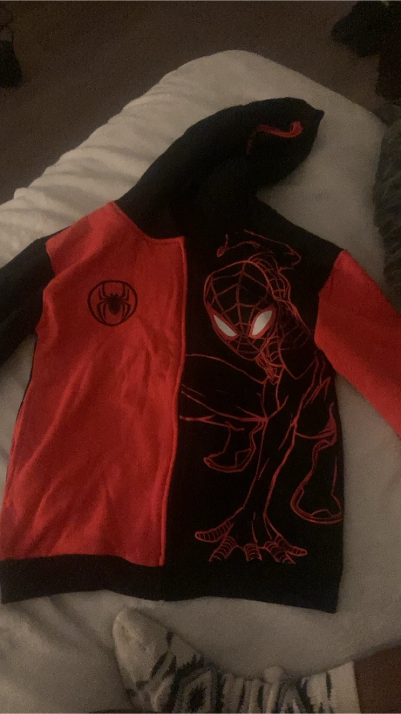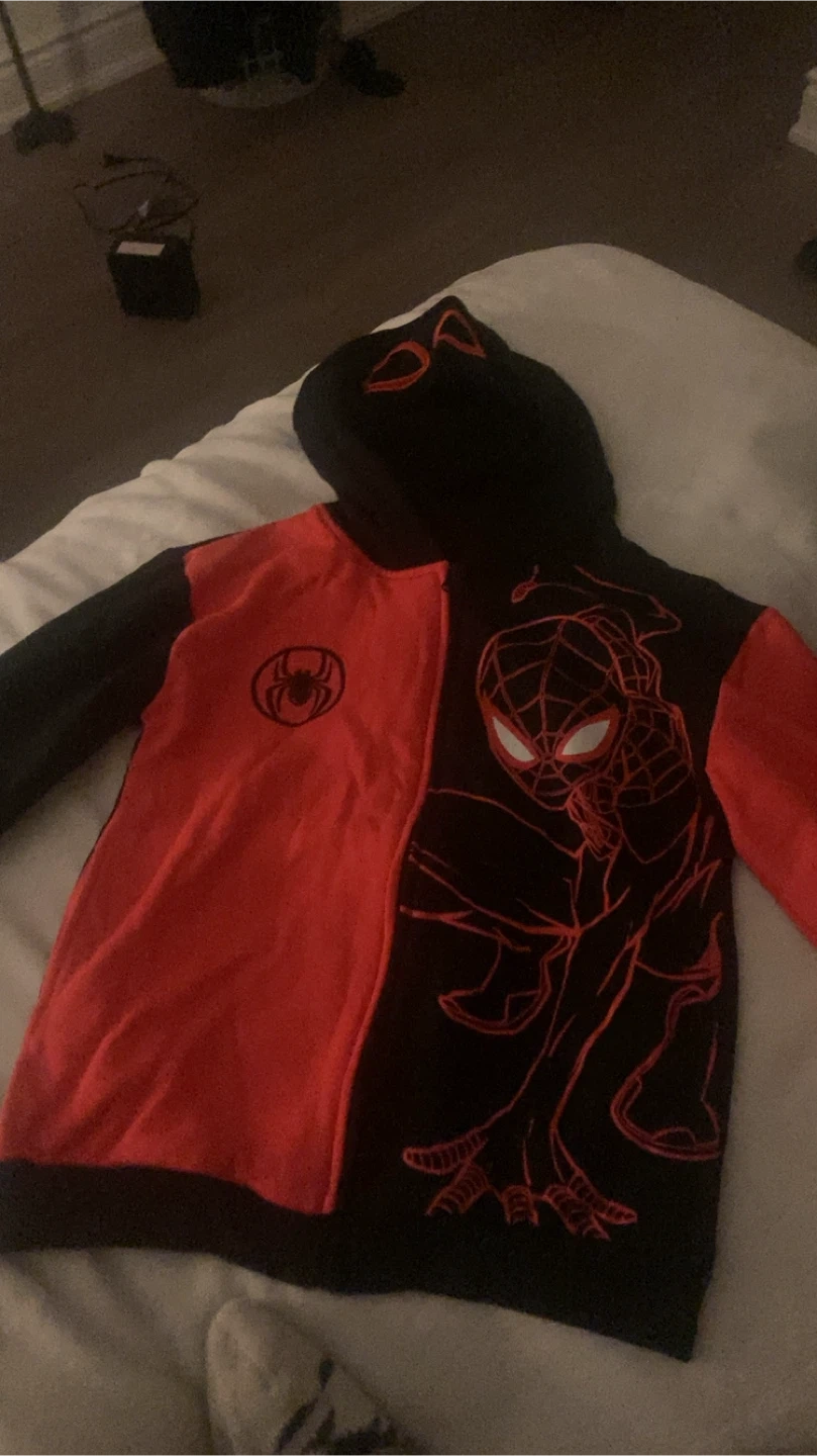 Selling a Spider-Man Miles Morales hoodie! It's red and black, featuring a cool design of Miles Morales. Never worn. Price is negotiable. Perfect for any Spider-Man fan to stay cozy