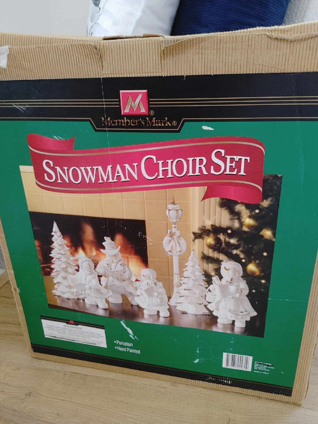 Selling a Member's Mark Snowman Choir Set! This porcelain, hand-painted set is perfect for adding a touch of winter charm to your home. It comes complete with all the pieces shown in the box