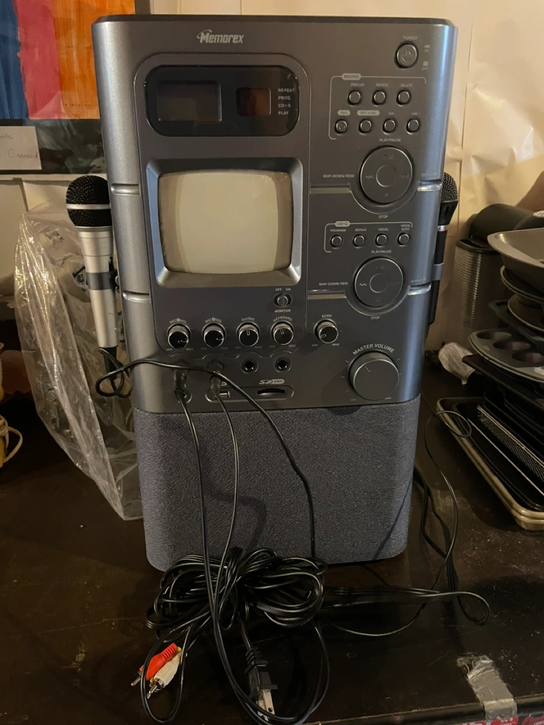 Selling a Memorex karaoke machine! It comes with a variety of karaoke CDs to get you started. Includes microphones and all necessary cables. Perfect for family fun or parties! Always kept in great condition and works great. Smoke free, pet free home.