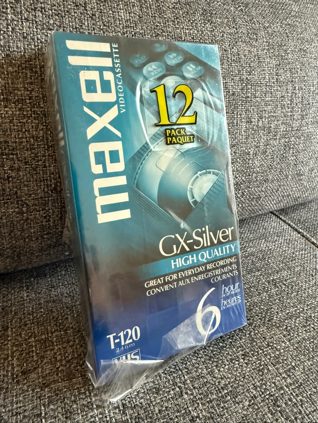15Selling two new, sealed VHS tapes: - Memorex SHQ T-120 (6 hours in EP mode) - Maxell GX-Silver T-120 (12 pack)