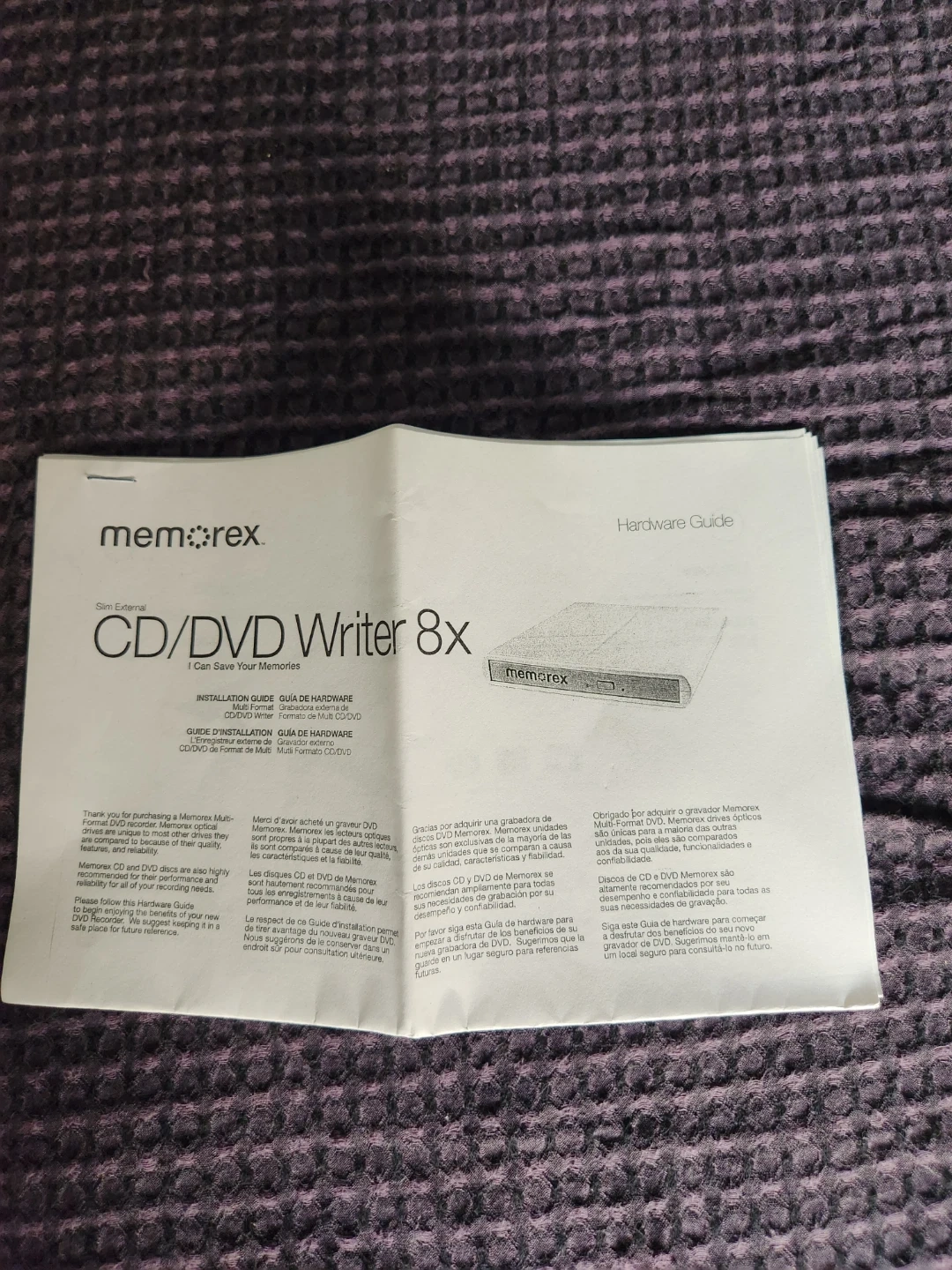 60Selling a Memorex Slim External CD/DVD Writer 8x. It comes with the Nero 2014 Essentials installation disc, hardware guide, and USB cable. Great for burning, editing, backing up, converting, and playing your movies and photos