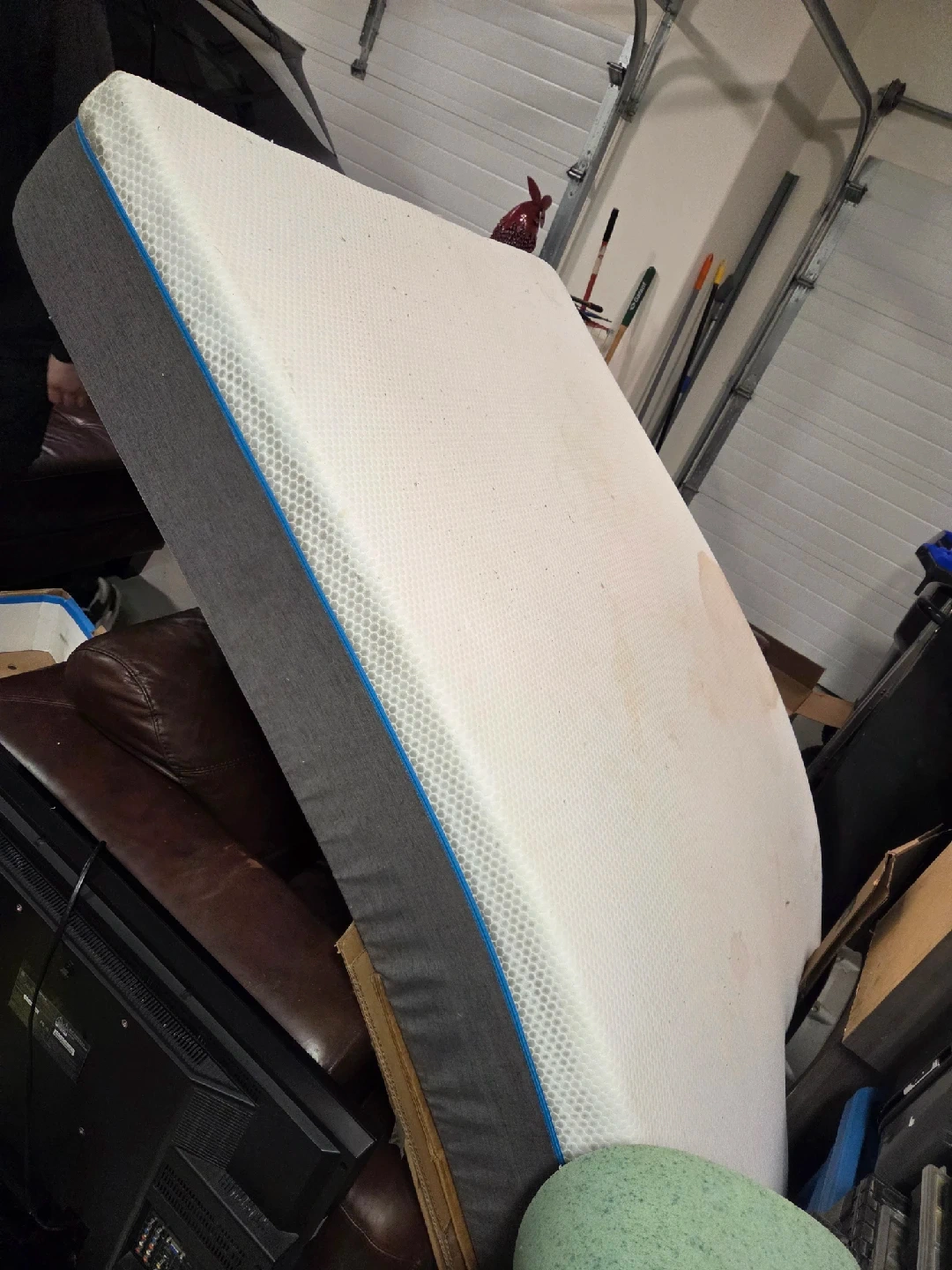 60Selling a double memory foam cooling mattress that's in great condition! It has a grey trim with a blue accent line. Perfect for a spare room or student! A few watermarks but clean otherwise (looks and feels new with a sheet on) and only used for about 6 months hence the price of $75. It was originally $320. Message me if interested. Thanks!