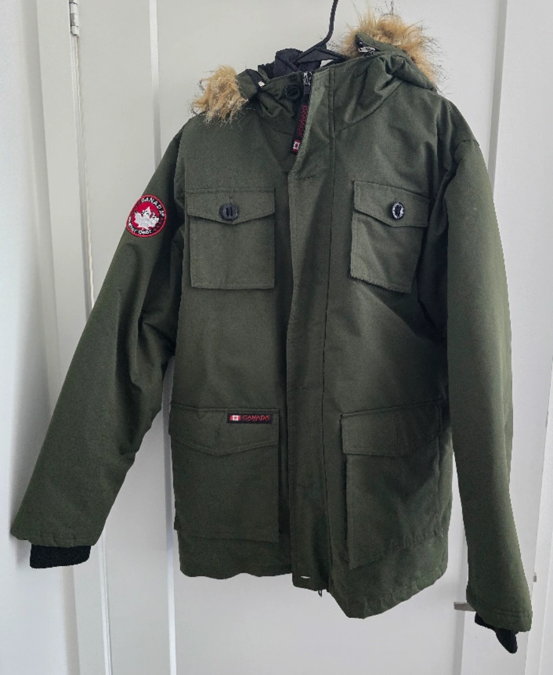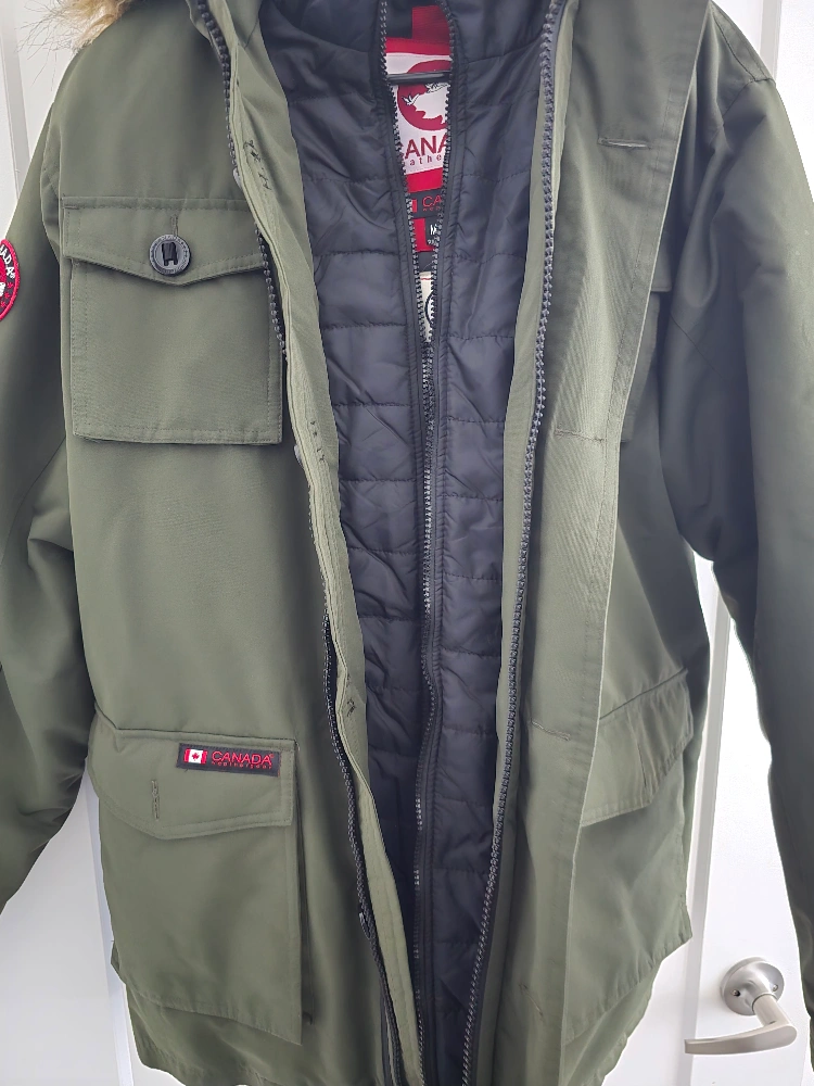 1000+Selling a Canada Weathergear parka in size M/M. It's an olive green colour with a faux fur trim on the detachable hood. Keeps you warm in temperatures as low as -20°C for moderate activity.