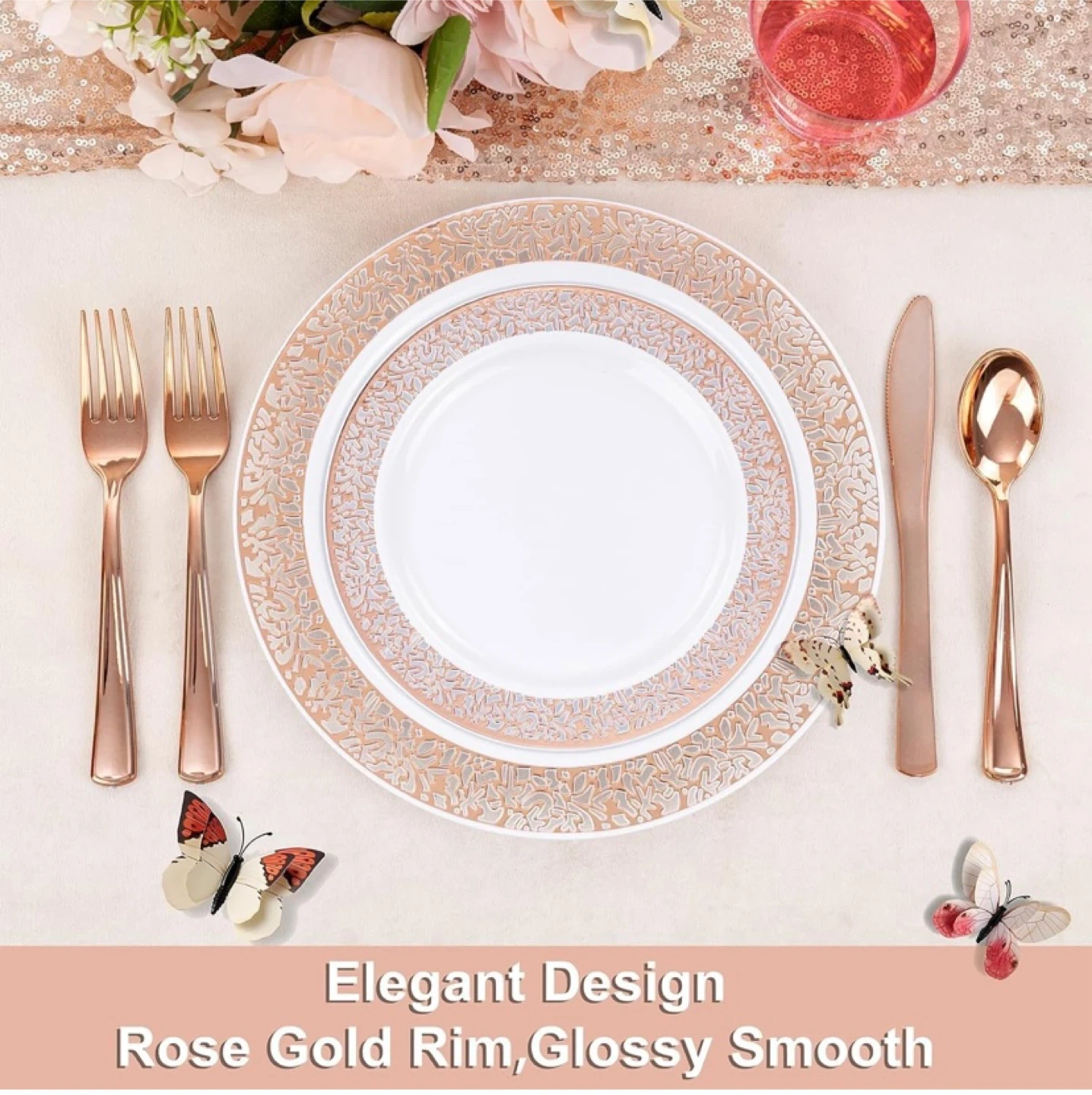 New 350 Pieces Rose Gold Disposable Plastic Dinnerware