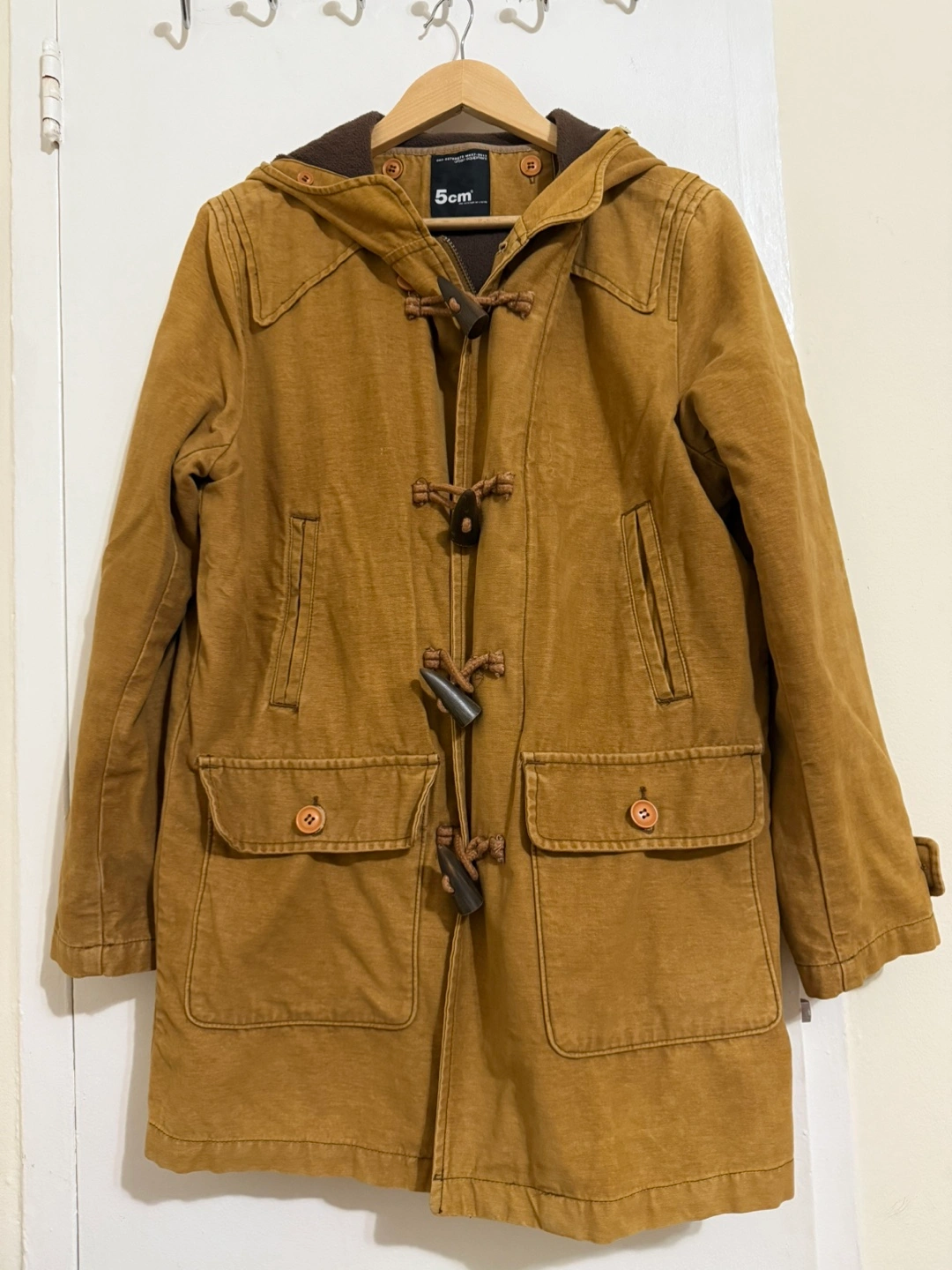 70Here's a stylish brown duffle coat from 5cm! It's in great condition and ready to keep you warm. Perfect for those cooler days!