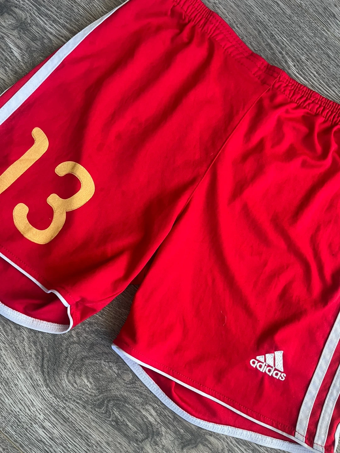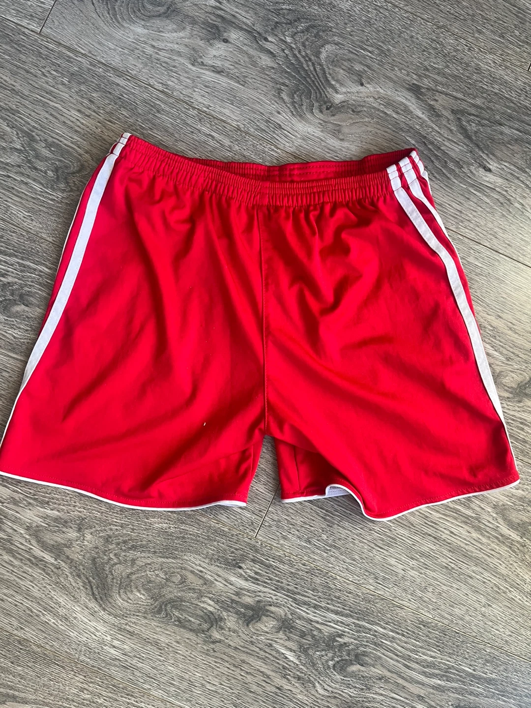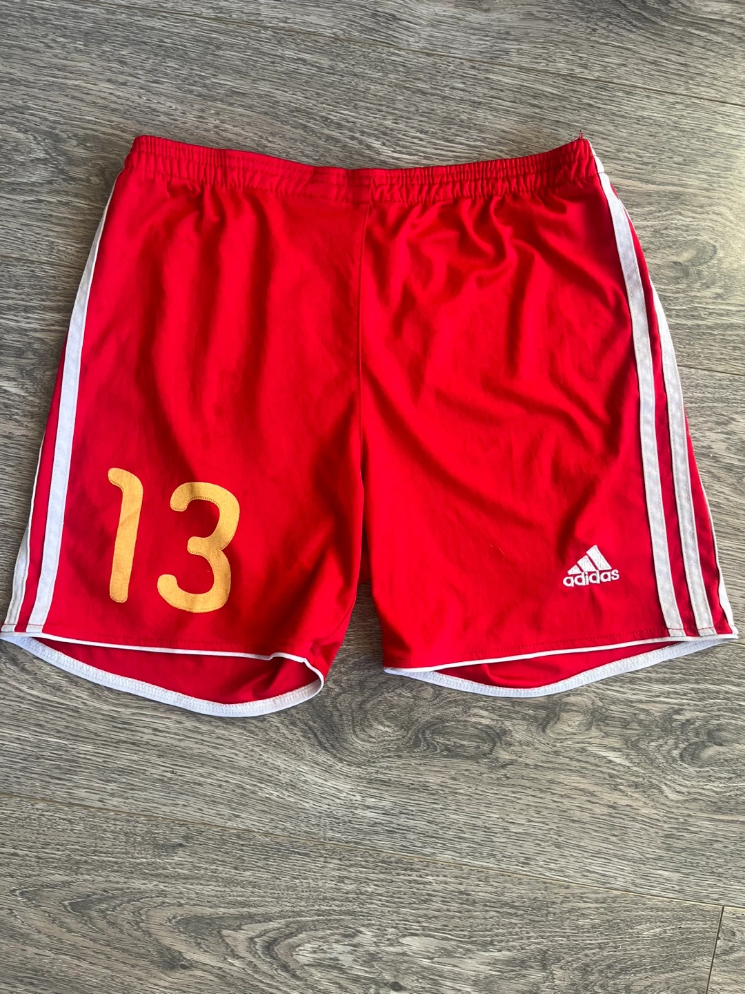 Men’s Adidas Red Athletic Shorts - Medium Selling a pair of men’s red Adidas athletic shorts. Size medium. They have the classic three stripes down the side and the Adidas logo on the front. There's a number '13' on the left leg. Perfect for sports or casual wear.