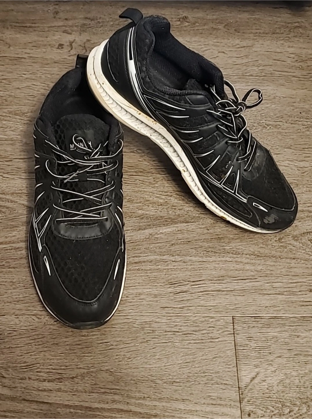 Selling a pair of men's athletic shoes in black. They show some signs of wear but are still in good condition for running or casual wear. Please see the photos for details. Size 16 - Europe 49 Men's runners lightly worn for 3wk.