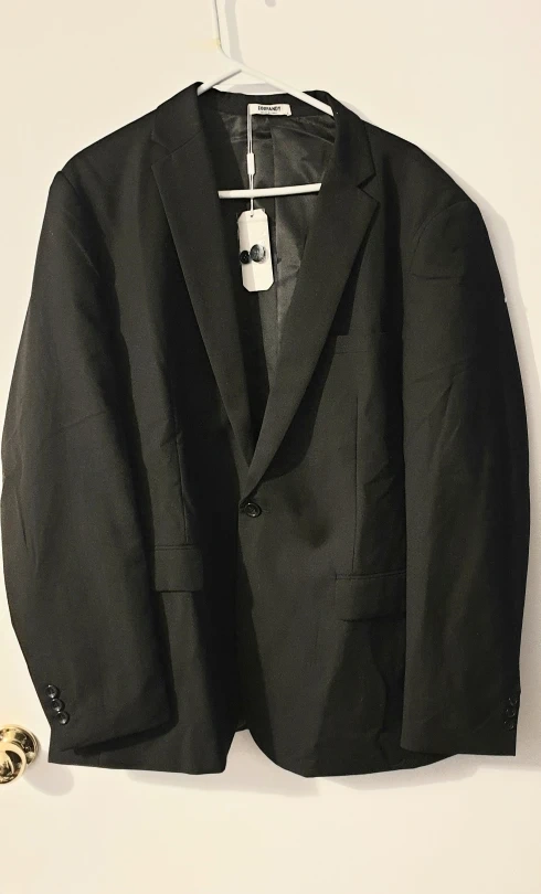 A classic black blazer for men. Features buttoned cuffs and pockets. Single breasted with a button closure. Would make you feel incredibly relaxed, wearing this blazer. Cash only please. mens suit jacket sleeve 26 1/4" arm pit to arm pit Laid flat 25" , waist laid flat 23", collar to hem 31.5"