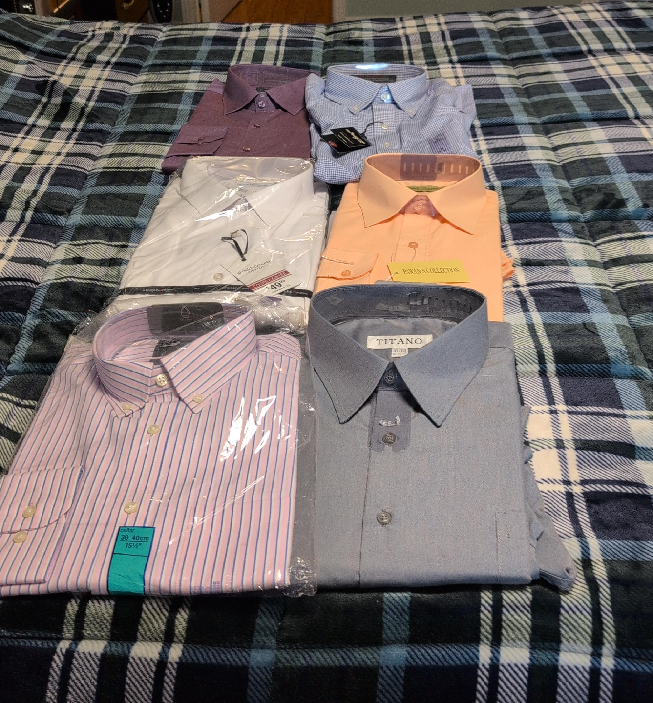 113Selling a collection of men's dress shirts in various colours and sizes. Brands include smooth uomo, Pawan's Collection, and TITANO. Sizes range from 15 1/2" to XL. All shirts are in great condition and ready for a new home! 10dollars each
