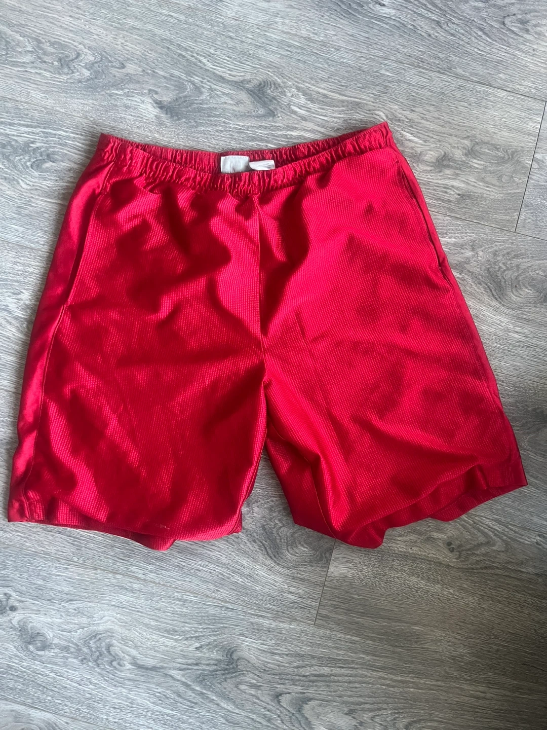 Red athletic shorts in good condition. Perfect for sports or casual wear.