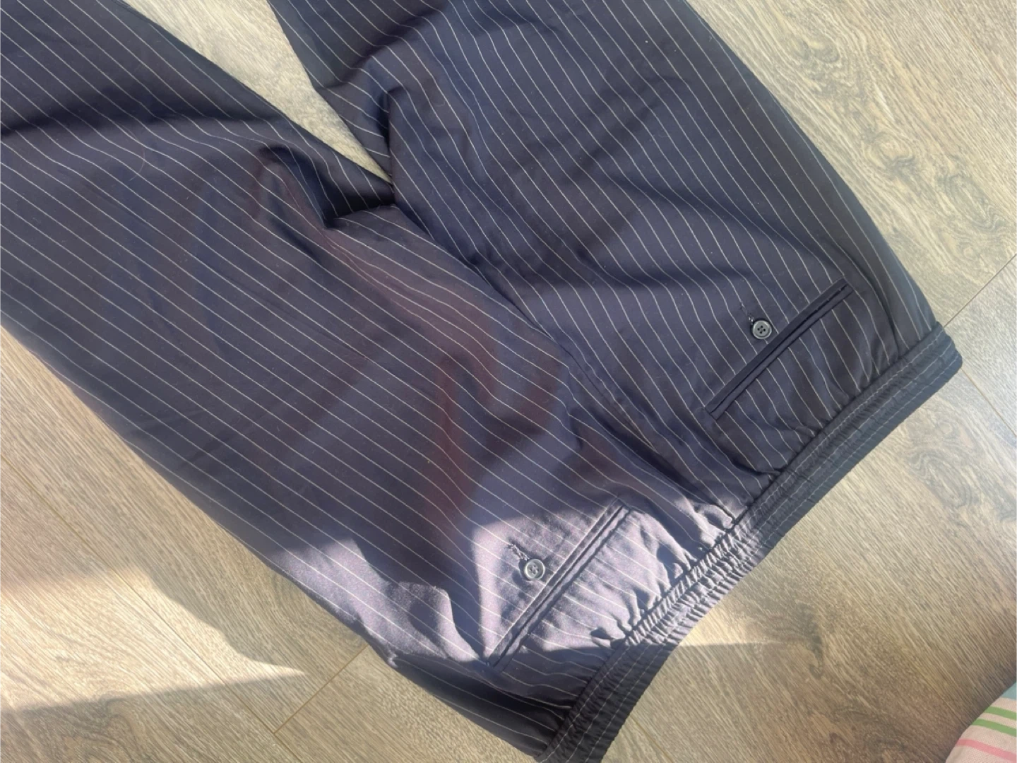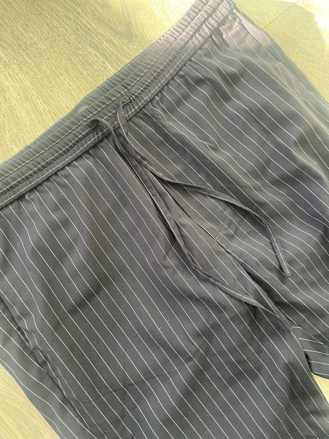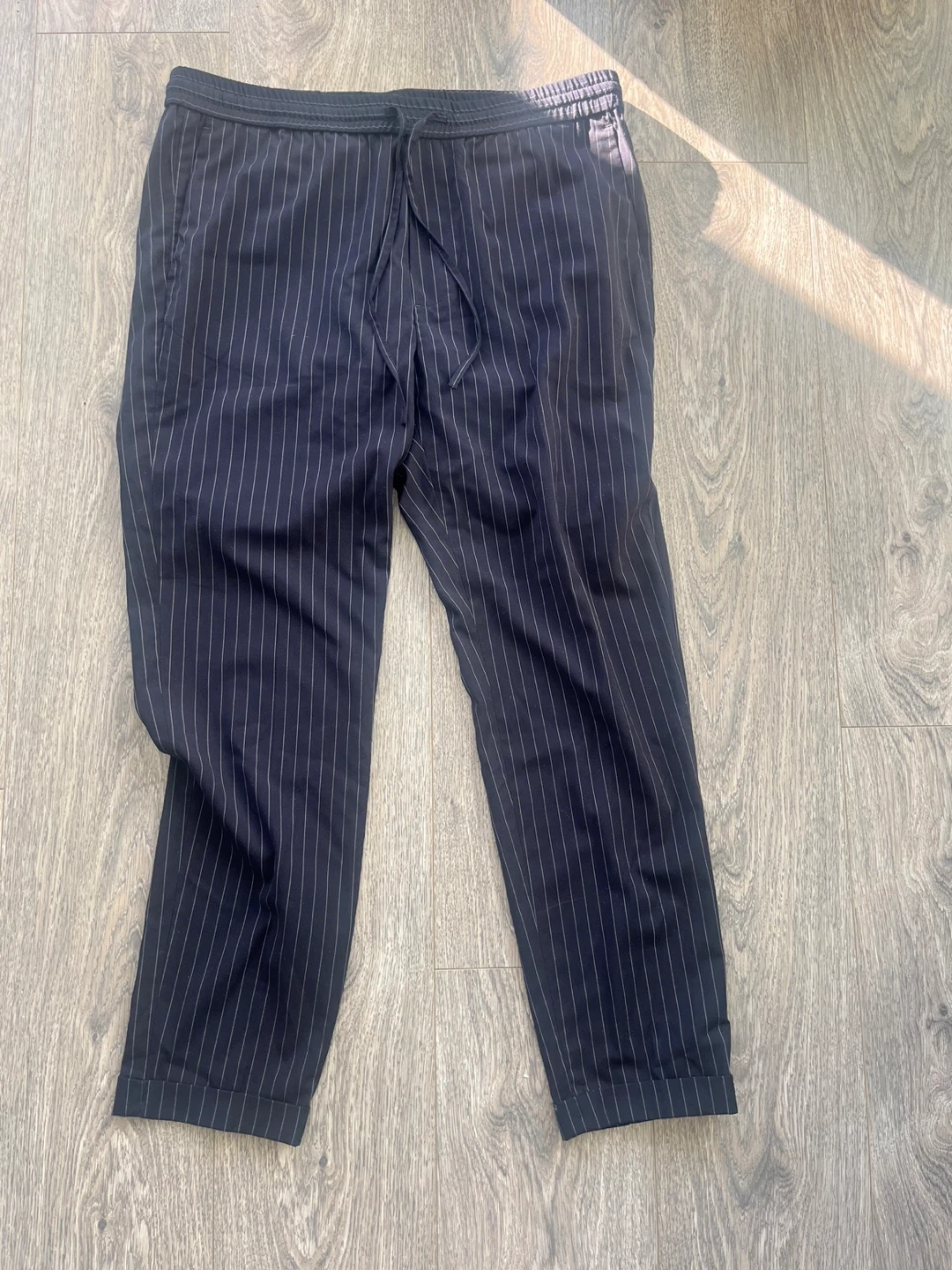 Men’s L Navy Blue Pinstripe H&M Pajama Pants PJS I'm selling these size large dark blue PJ pants that feature a stylish pinstripe pattern. Brand new and from a pet & smoke free home. Key Features: - Stylish pinstripe pattern. - Comfortable elastic waistband with drawstring. Great for relaxing at home or running errands. No holds - first come first serve basis. Cash only. Pickup Bridgeland.