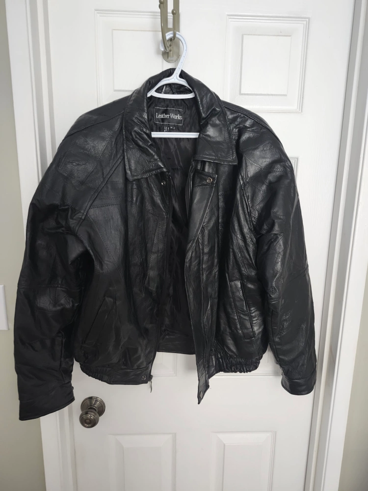 MENS GENUINE LEATHER BOMBER STYLE. SIZE TAG SAYS MEDIUM BUT FITS LIKE LARGE SIZE