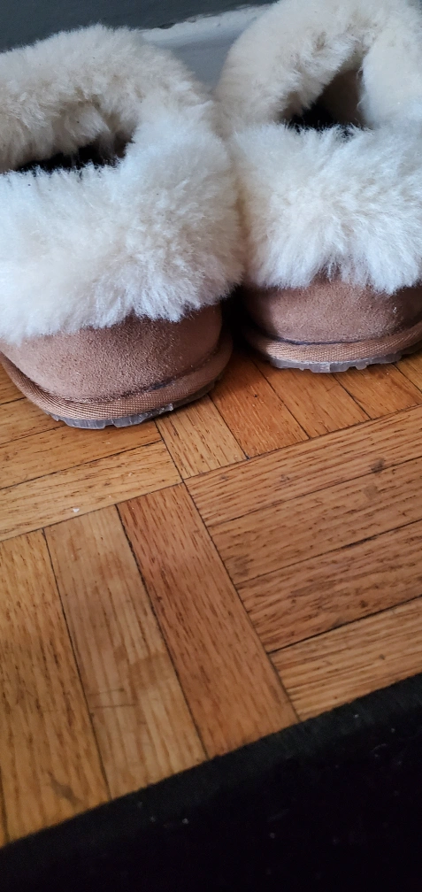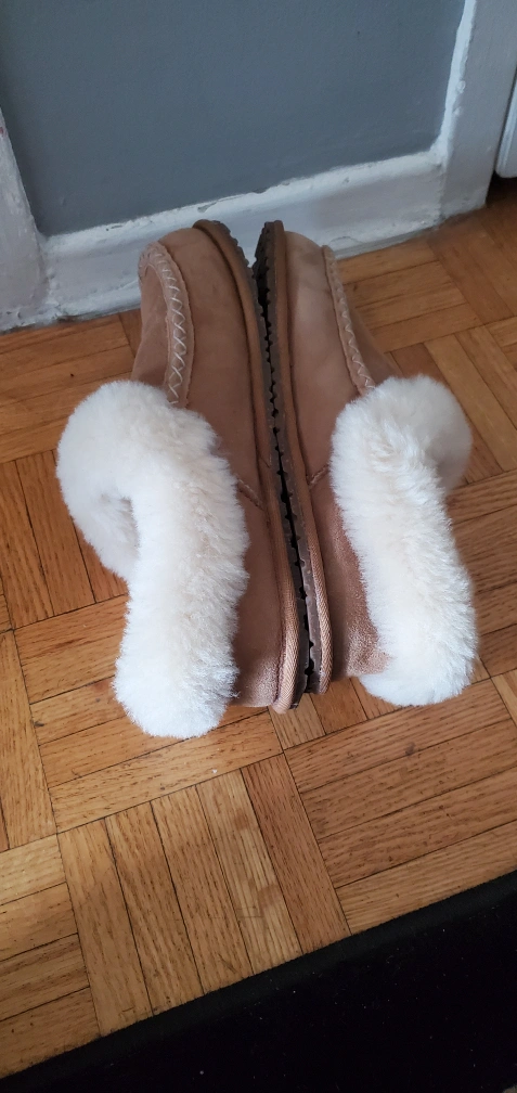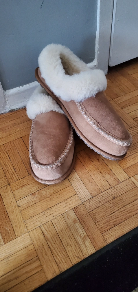 16Cozy brown sheepskin slippers. Soft white faux fur trim. Great for keeping your feet warm. very good condition only cash price firm no delivery. I have more Slippers for Men's & Boys for sale all size. I have and app Facebook. Location Cawthra and Lakeshore Mississauga