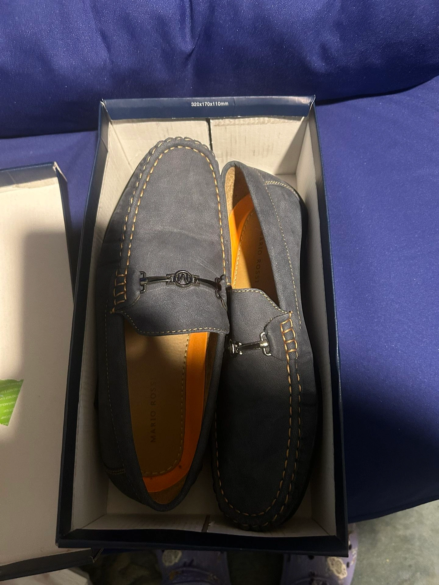 15Elegant blue suede shoes with box and dust bag Size: 8.5 Color: Blue Style: Moccasin Brand: Mario rossi