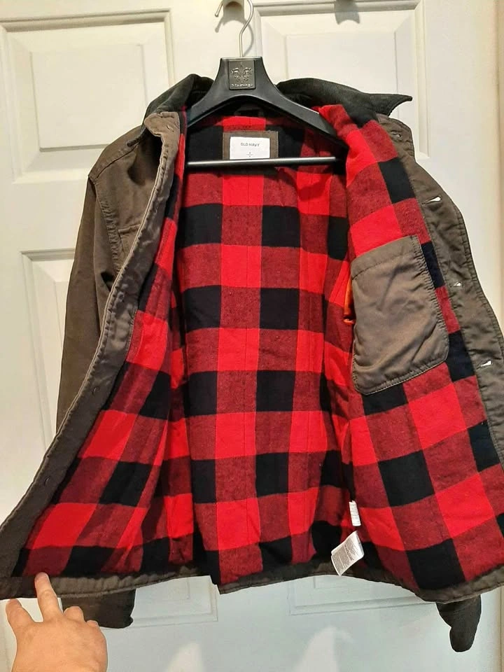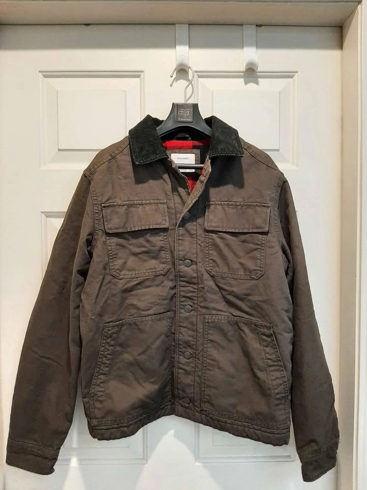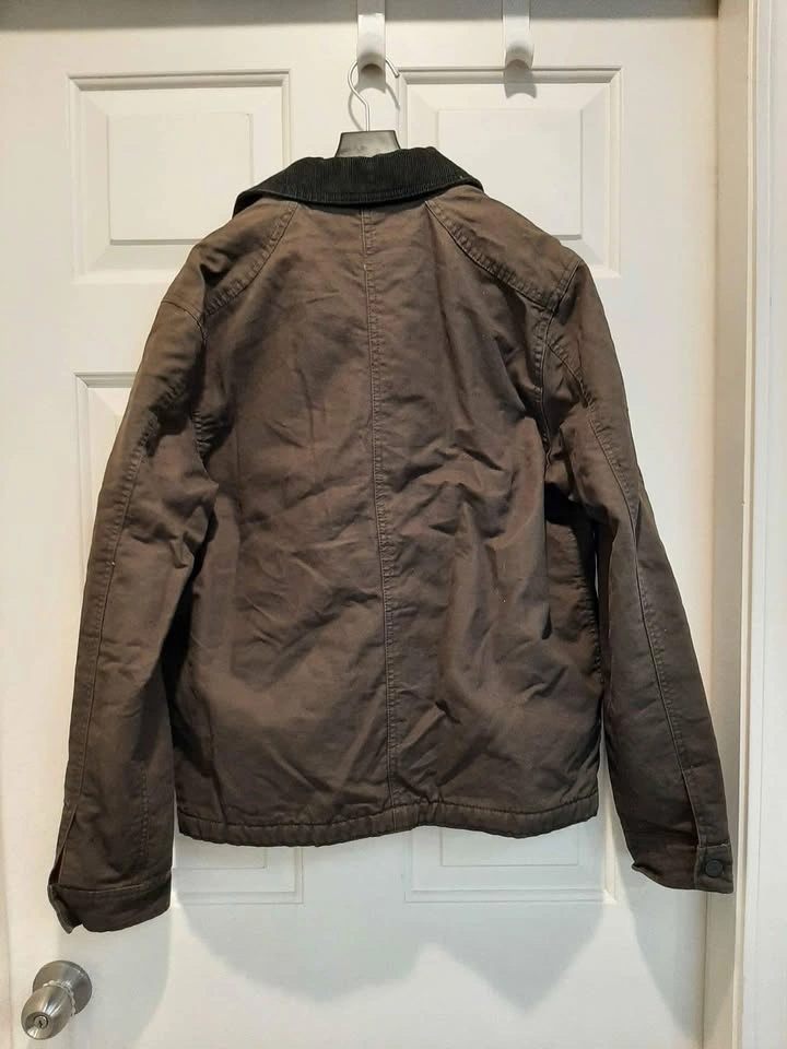 21Size: mens small (Chest 51 cm x length 70cm) Like new condition Buttoned cuff so you can roll up 4 total pockets 100% cotton, 100% polyester Worn few times as i grew out of it quick Pickup around Marine Gateway