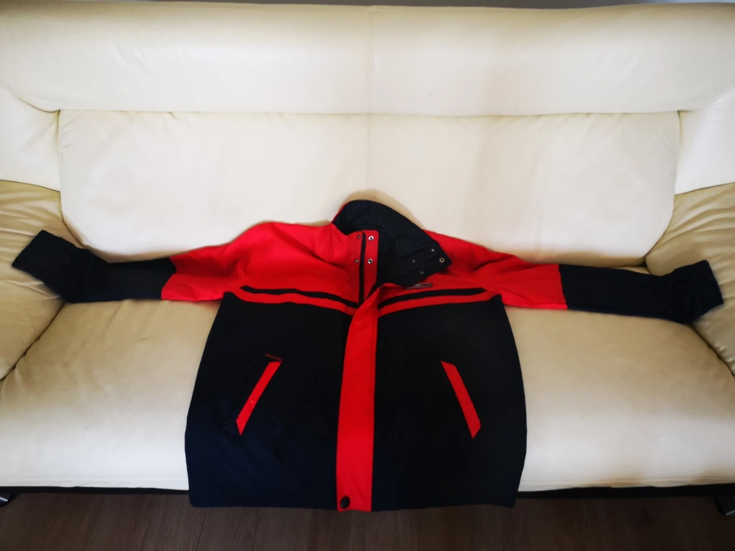 Red and black colour block jacket. Features a zipper closure and pockets. Good condition.