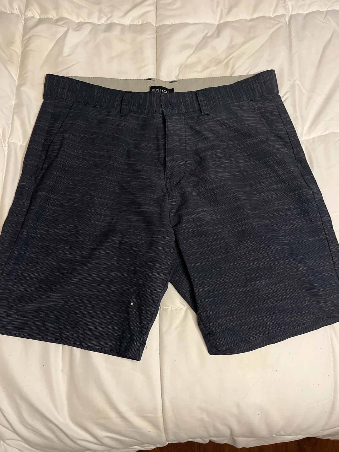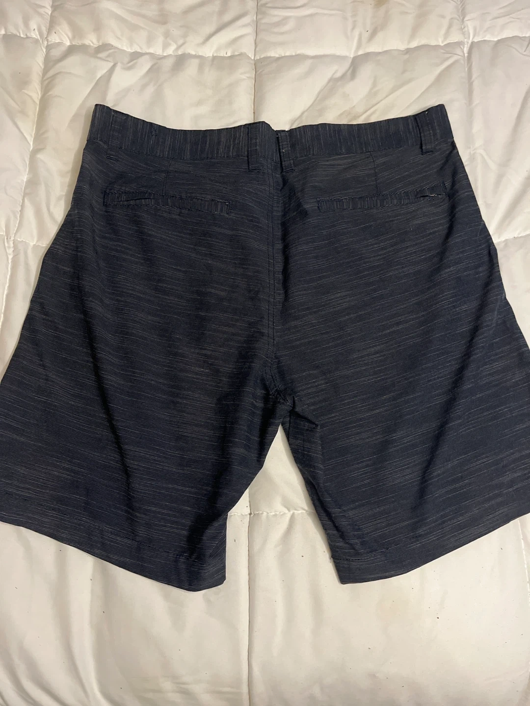 65Selling a pair of men's shorts in great condition! They are a size 34 and feature a stylish, dark gray/black colour with a subtle striped pattern
