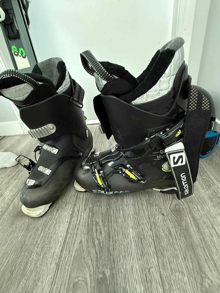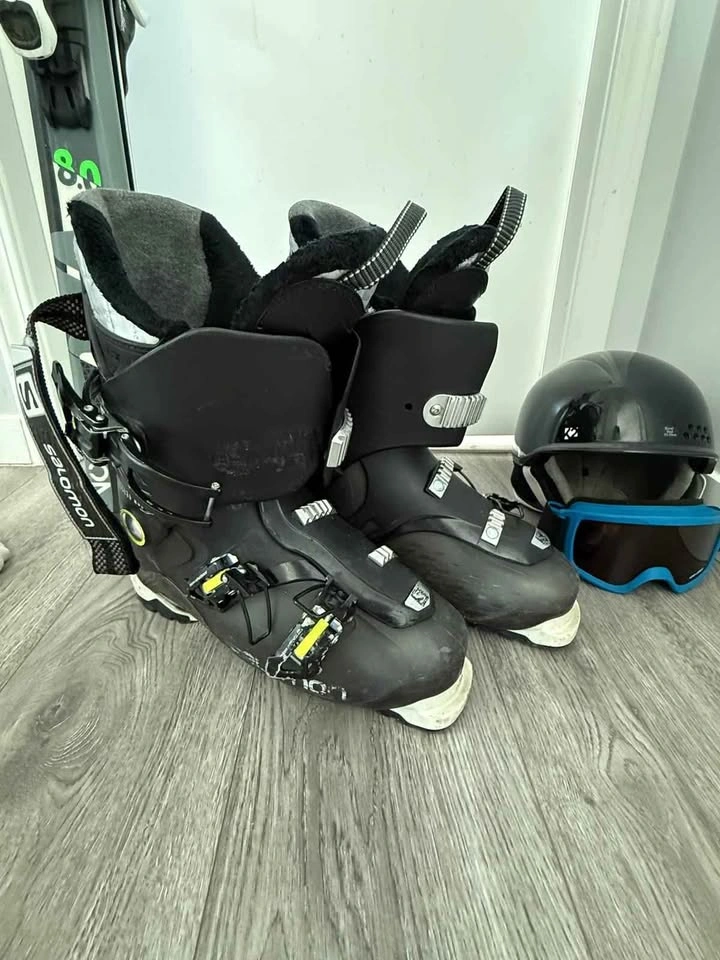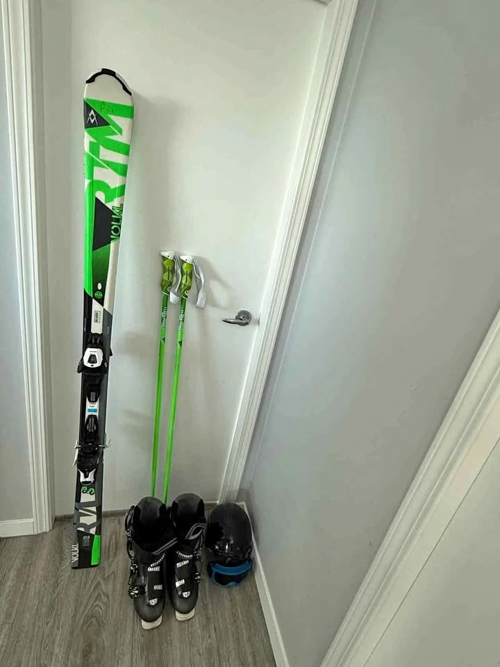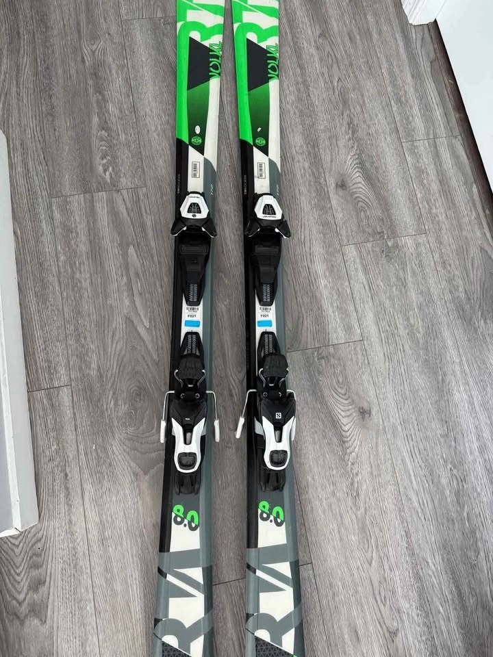 Mens ski bundle - ideal for beginners or intermediate skiers, includes the following: - Volkl RTM 8.0 skis with Salomon bindings (size 172) - Komperdell Virtuoso ski poles - green - Salomon Quest Access R80 boots (size 11) - K2 ski helmet - black - Wedze ski goggles All items in good condition.
