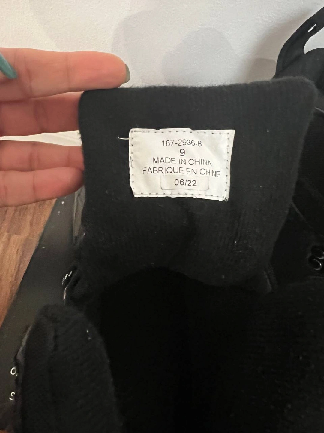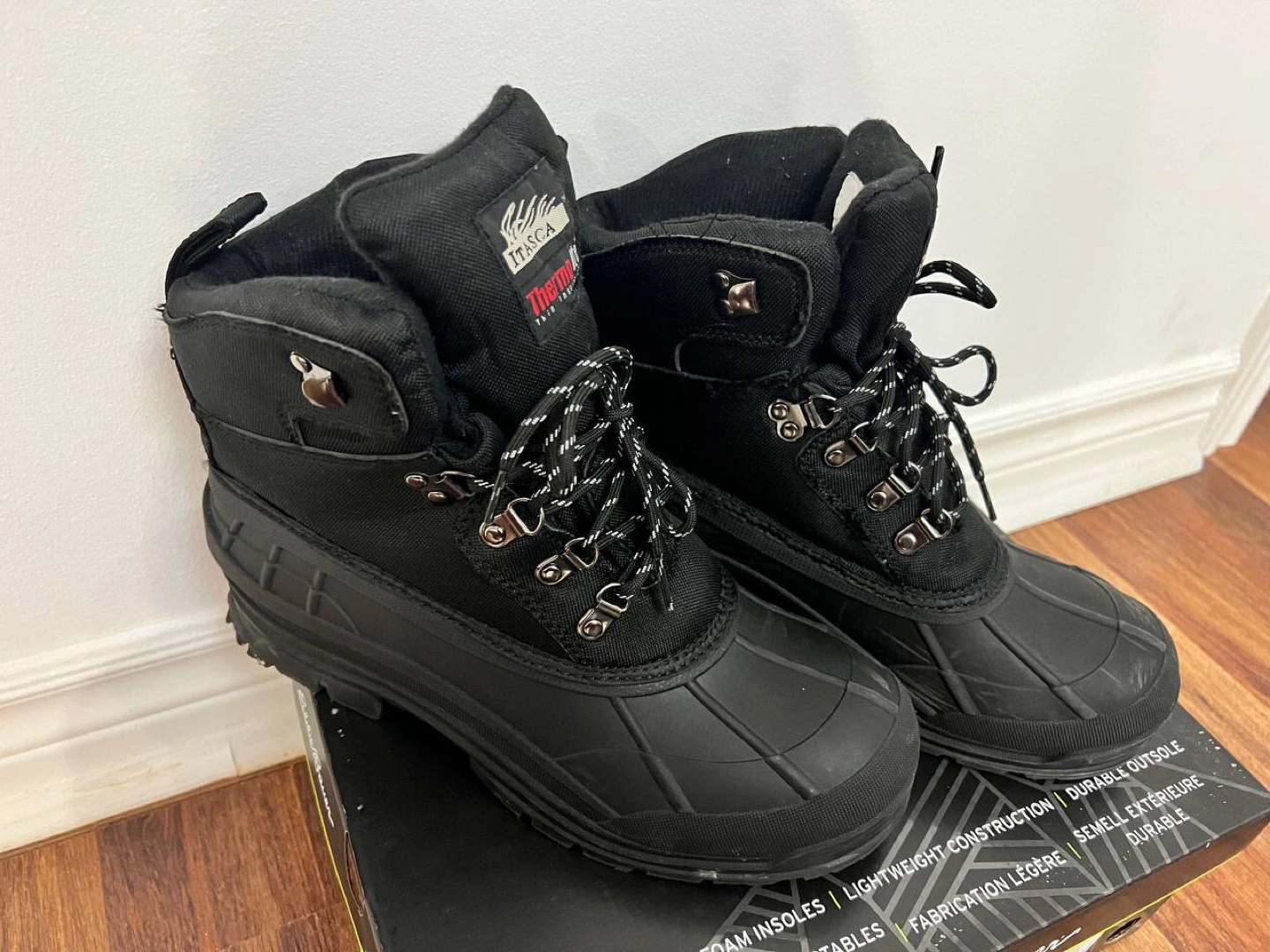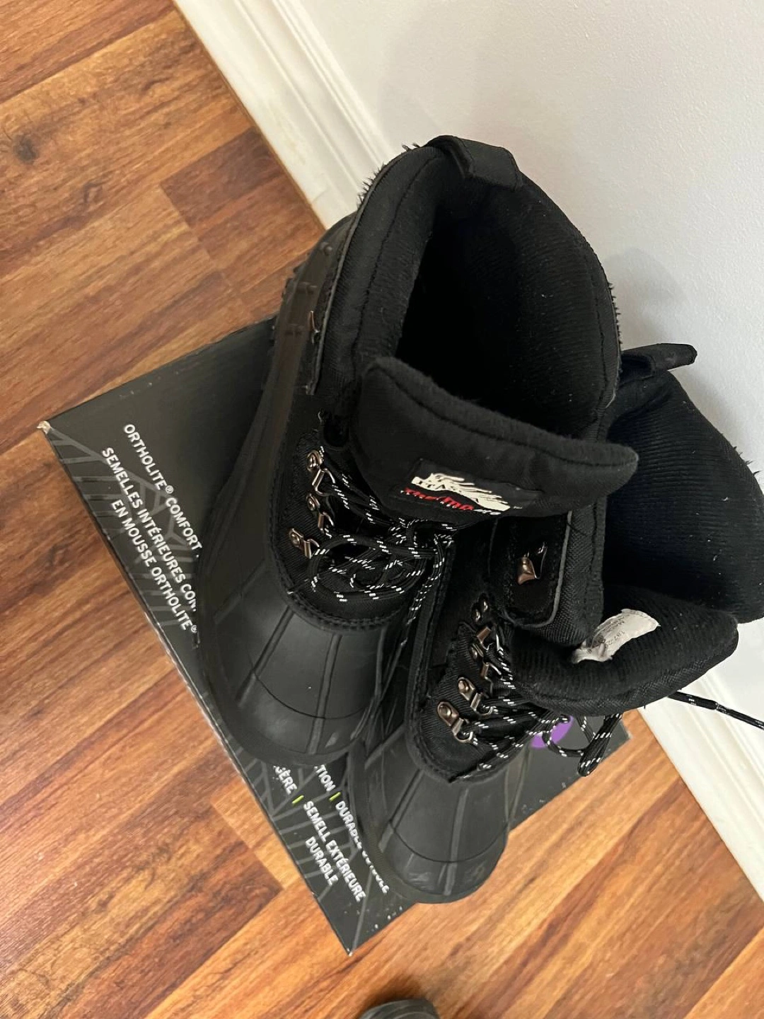 108Black winter boots. Lace-up style. Durable outsole. Lightweight construction. Foam insoles. Ortholite comfort. Made in China.