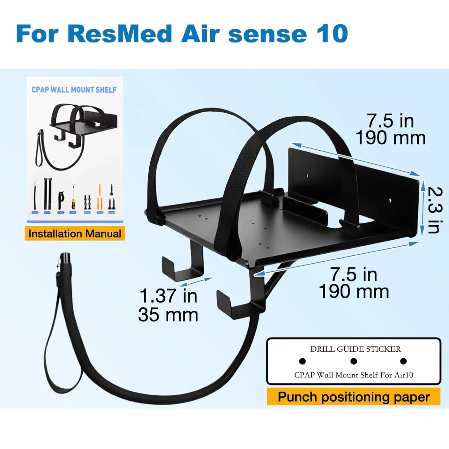 Lightweight Aluminum Wall Mount for CPAP Machine Features Anti-Slip Straps & Hose Management Hook Bedside Organizer Compatible with ResMed AirSense 10 (Non-Medical Device), Brand New in the Box/Sealed