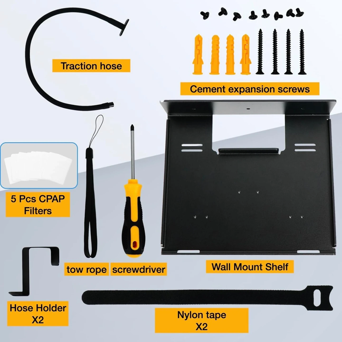 Save Space with All-in-One Design: Save 40% space with our 2025 upgraded CPAP wall mount and bedside stand. This all-in-one solution features a space-saving wall-mounted design to free up your nightstand, plus an integrated CPAP hose holder to keep tubing organized. As the perfect CPAP stand bedside solution, it lets you easily move your machine from bedside to wall while maintaining a clean, clutter-free sleep area. With its smart CPAP hose holder and versatile mounting options, it's more efficient than ordinary stands