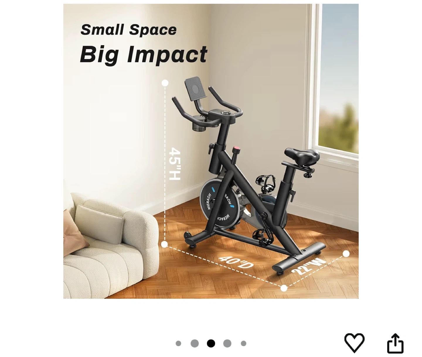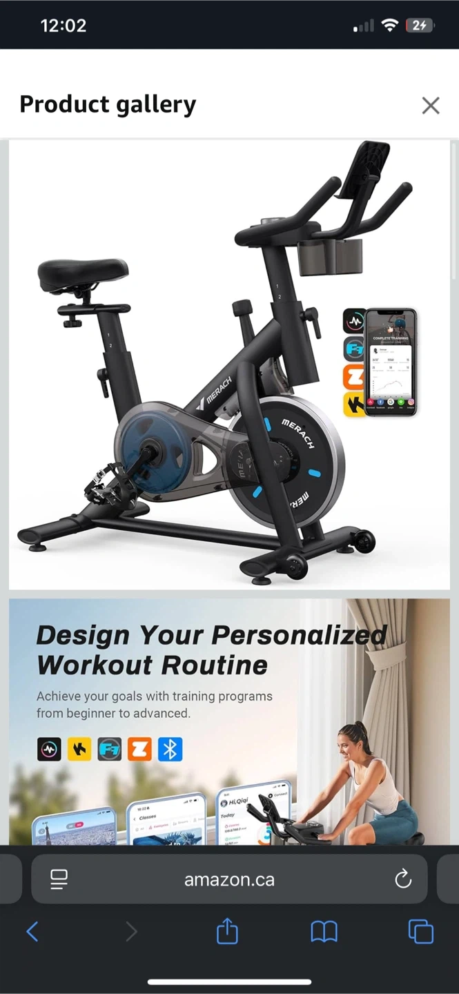 10Get your sweat on with this barely used MERACH exercise bike! It's perfect for indoor cycling and low noise workouts. It comes with an exclusive app and supports up to 300lbs weight capacity. It also has a dumbbell rack and free fitness courses. Design your personalized workout routine and achieve your goals with training programs from beginner to advanced