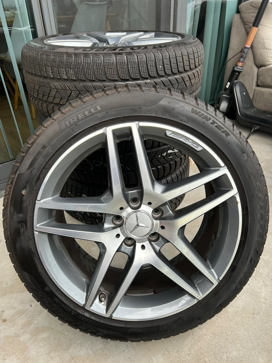 60Part of a $7,000 AMG winter set bought directly from Mercedes-Benz. Never driven, stored indoors. Size 275/35 R19 100W (fits 19” AMG rims) Run Flat, Authentic Pirelli — not a retread Perfect for C43, E43, GLC43, etc. Serious buyers only.