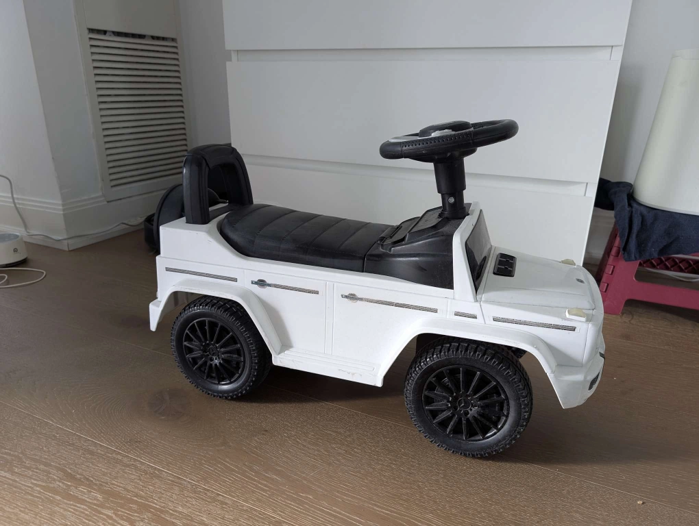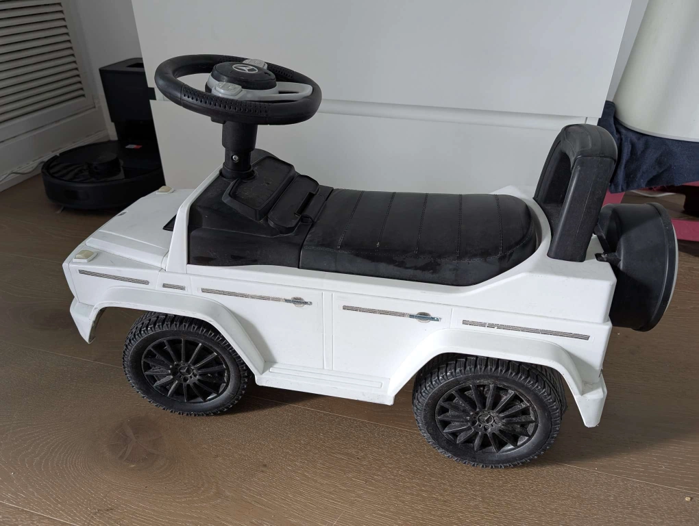 51Selling a white Mercedes-Benz G-Wagon ride-on car for kids! It's in good condition and ready for a new little driver. Perfect for indoor or outdoor fun, this ride-on car will surely bring smiles to your child's face.