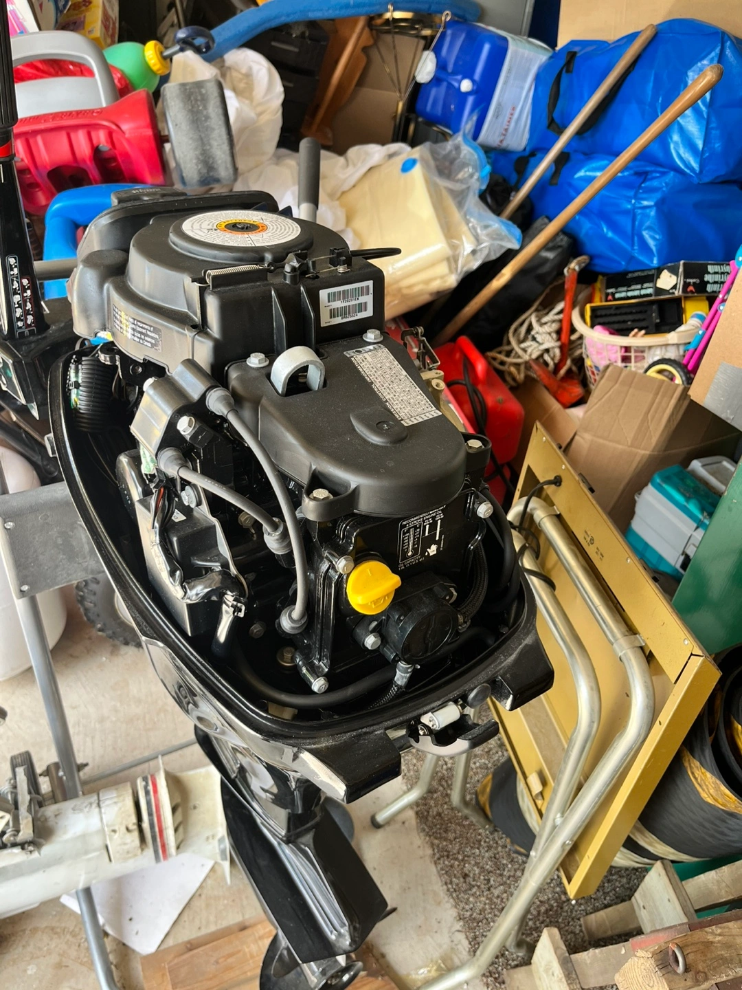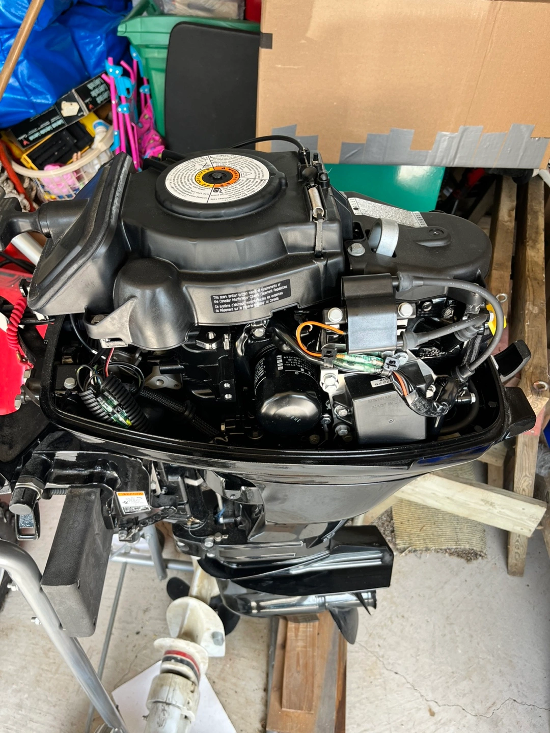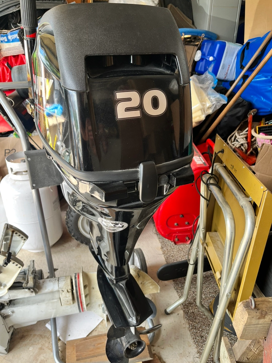 20 horsepower Mercury fourstroke outboard motor. Black in colour. good condition. Includes propeller and mounting bracket. Only saw water once