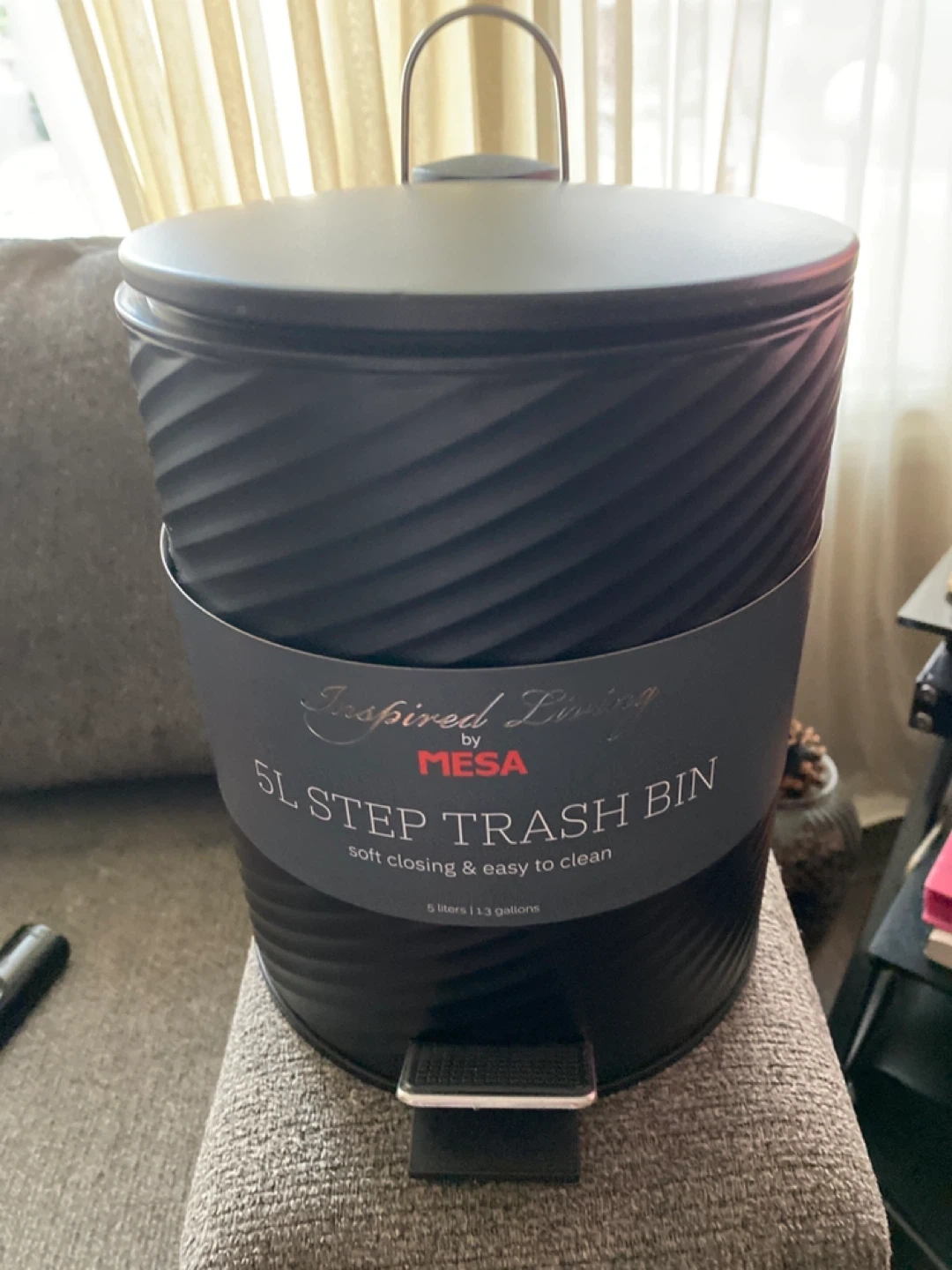 I'm selling a Mesa Inspired Living 5L Step black Trash Bin! This bin features a soft closing and is easy to clean.