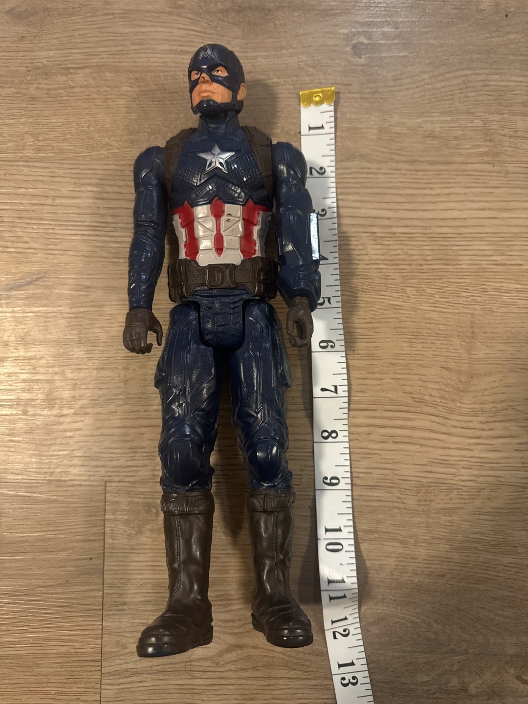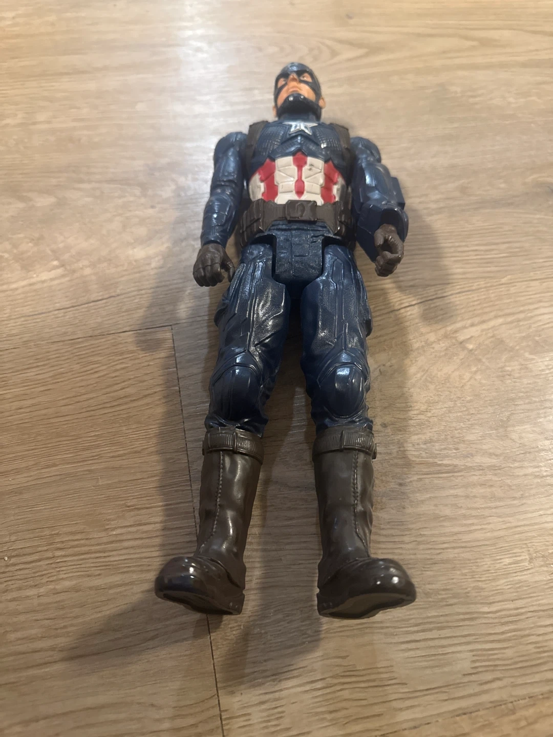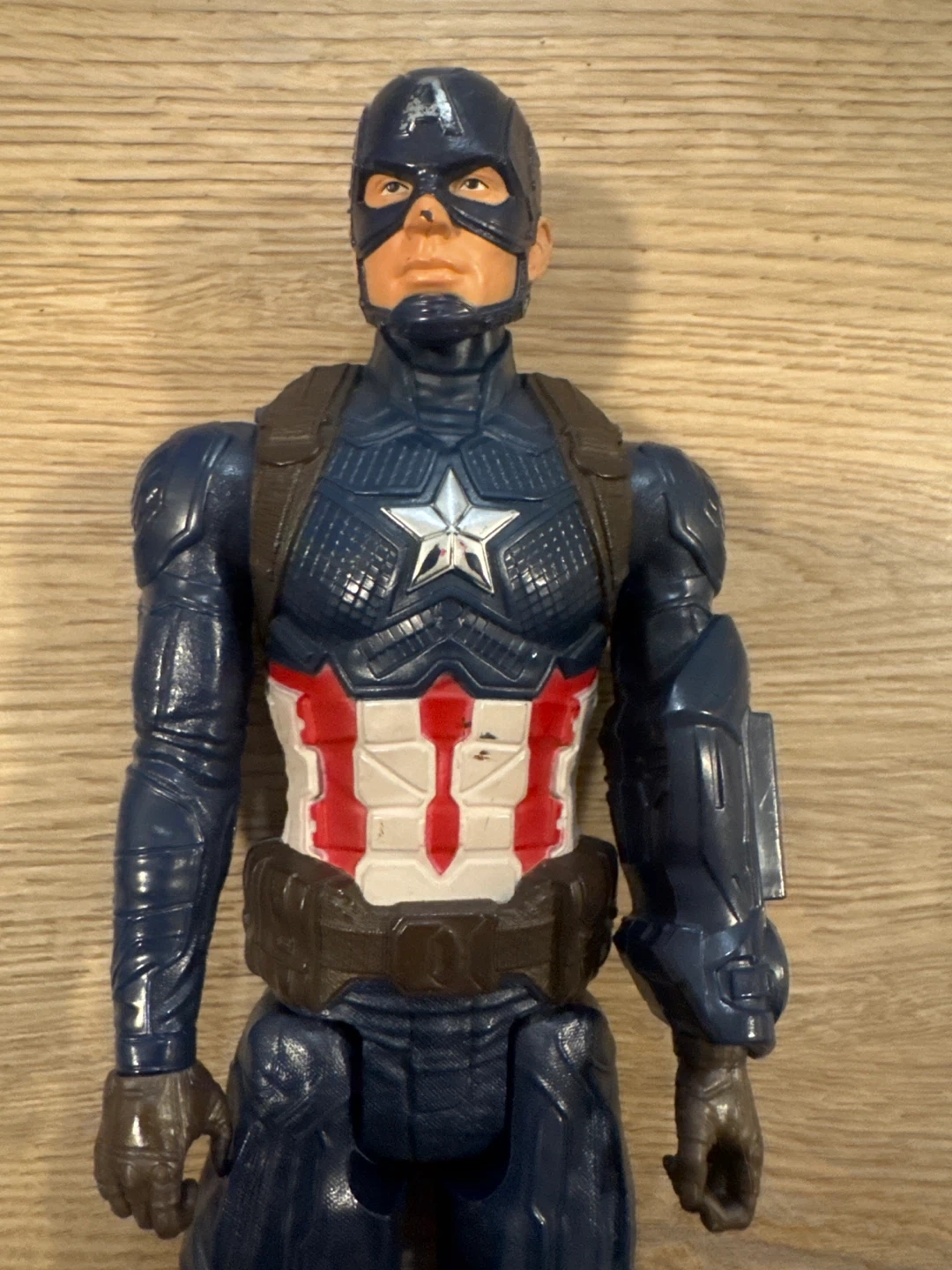 This is a Captain America action figure, perfect for Marvel fans. It's made of plastic and features detailed armour. It's a great toy for imaginative play!
