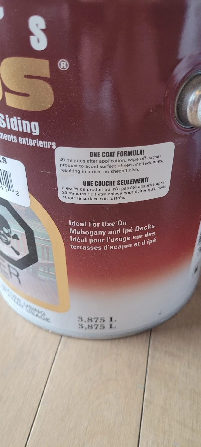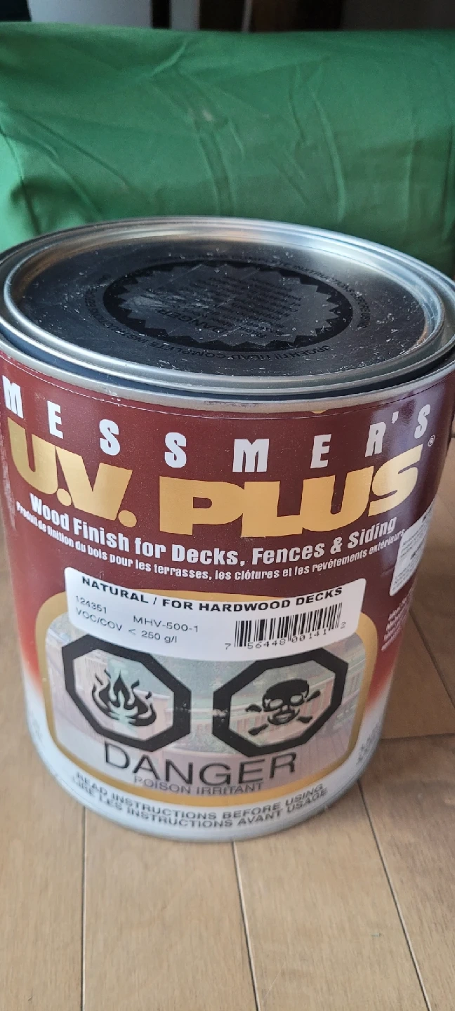 70Selling a can of Messmer's U.V. Plus Wood Finish for decks, fences, and siding. It's a natural finish ideal for hardwood decks. The formula is designed for one-coat application, wiping off excess product to avoid surface sheen and tackiness, resulting in a rich, no-sheen finish.