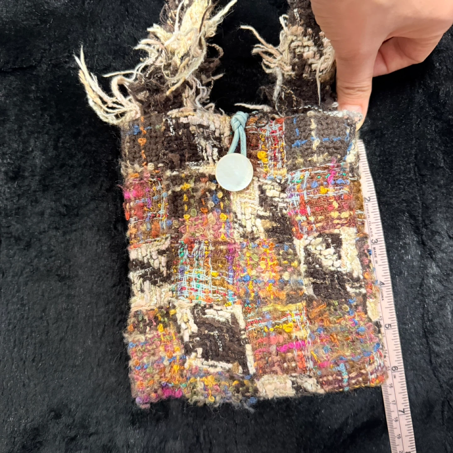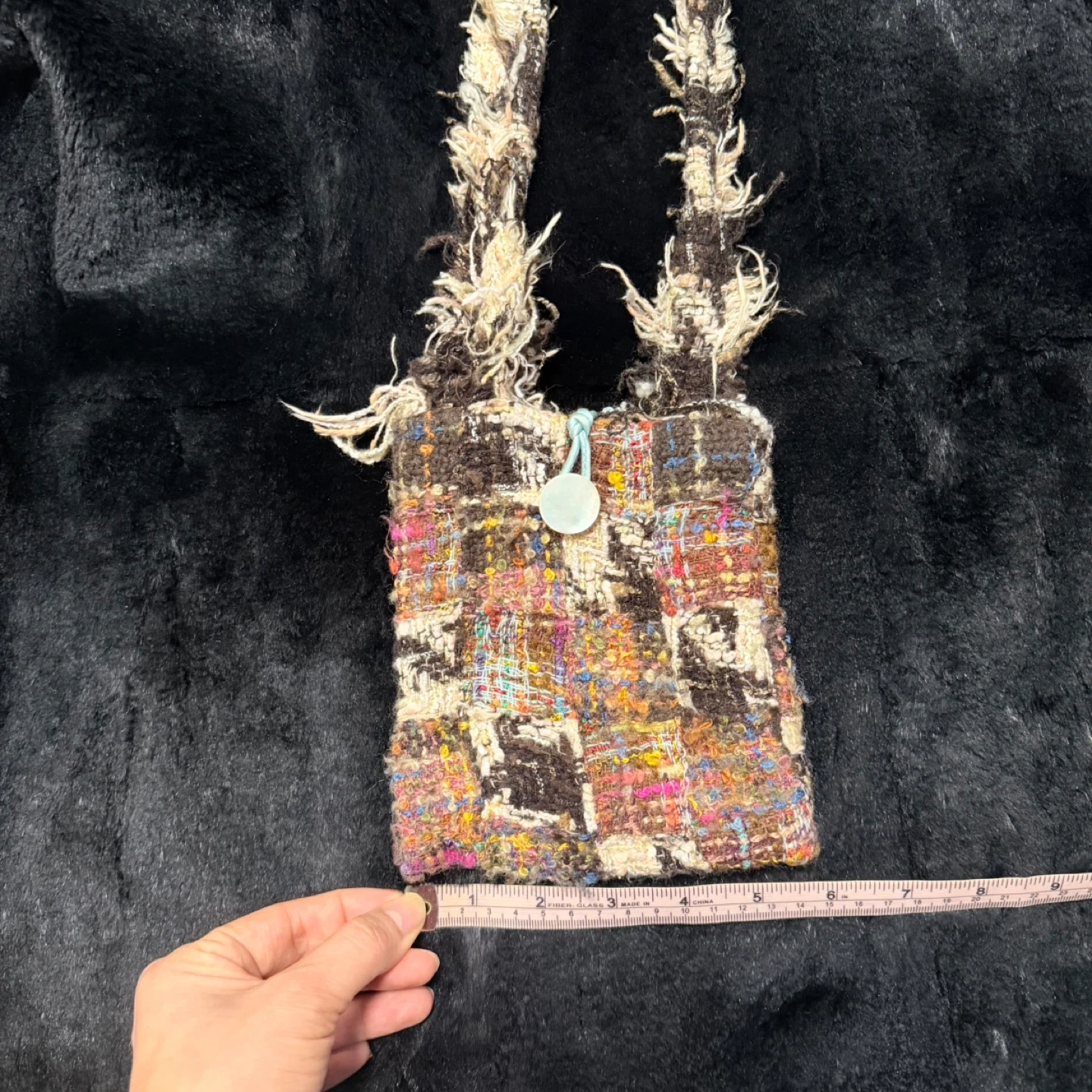 One and Only! Ultra-Lightweight! This is a luxury handmade shoulder bag with a colorful woven design! The strap is a unique braided style. It's in great condition and ready for a new owner. Size: 6" (W) x 6.5" (H) Strap Length: 32" Capacity: Perfect size for your essentials—you can carry your phone, keys, and cards with ease.