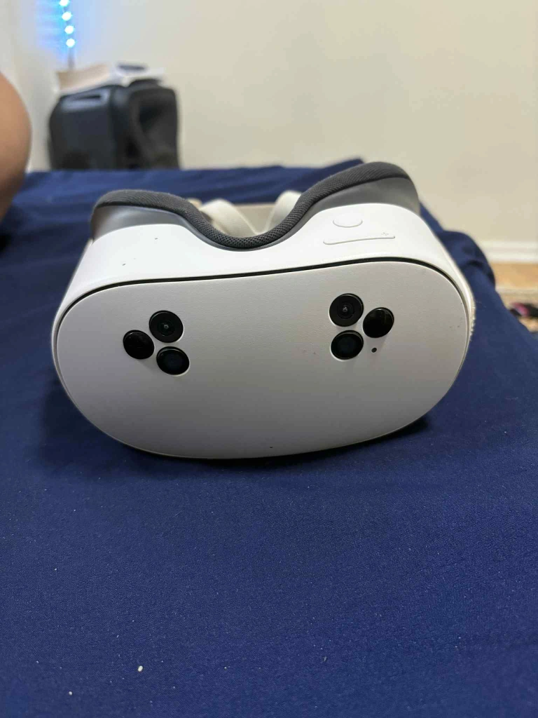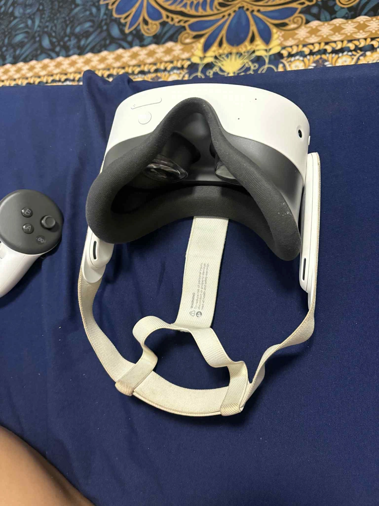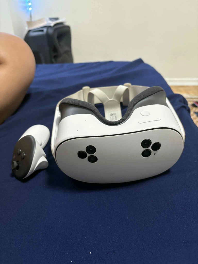 Selling a Meta Quest 2 VR headset. It comes with 2 controllers as pictured. Great for gaming and virtual experiences! ). (comes without a box and a charger) price is also negotiable