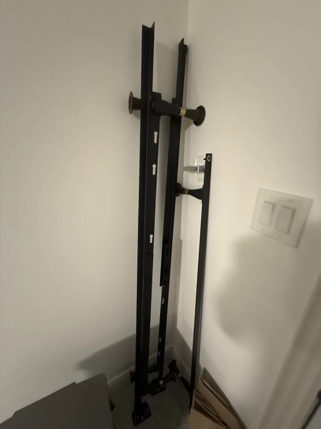 65Selling a sturdy metal bed frame in black. It's in great condition and ready to support your mattress. Perfect for a minimalist bedroom setup!