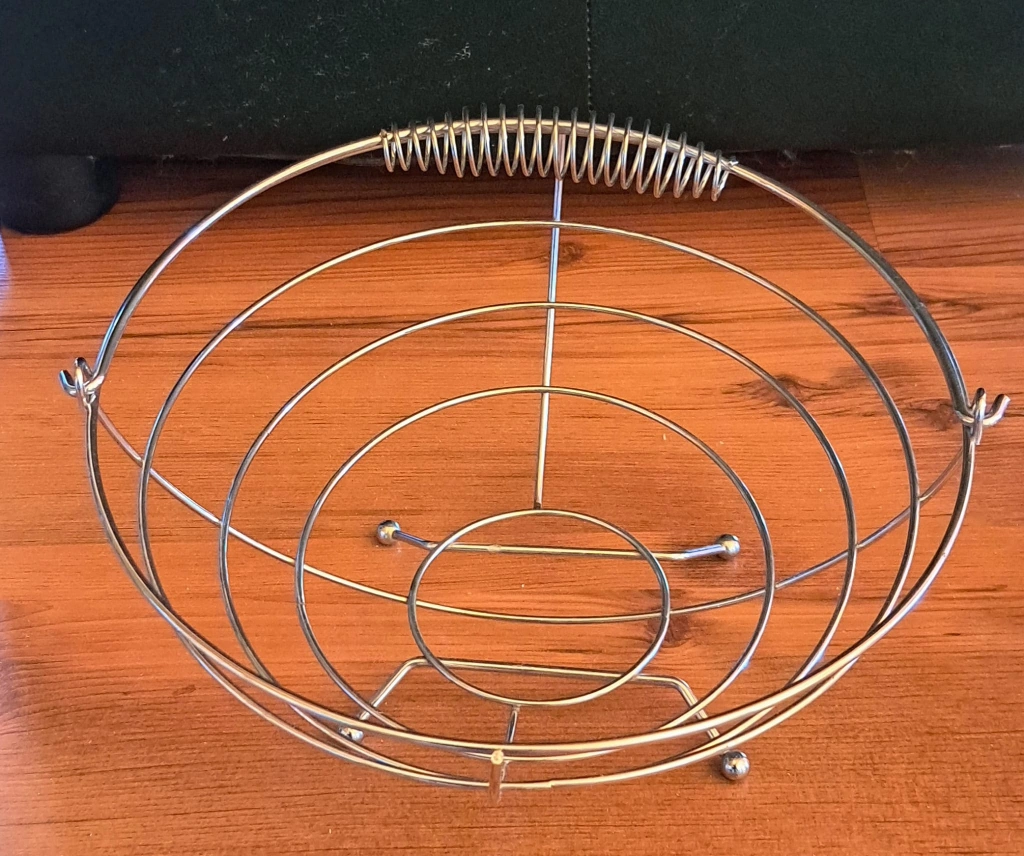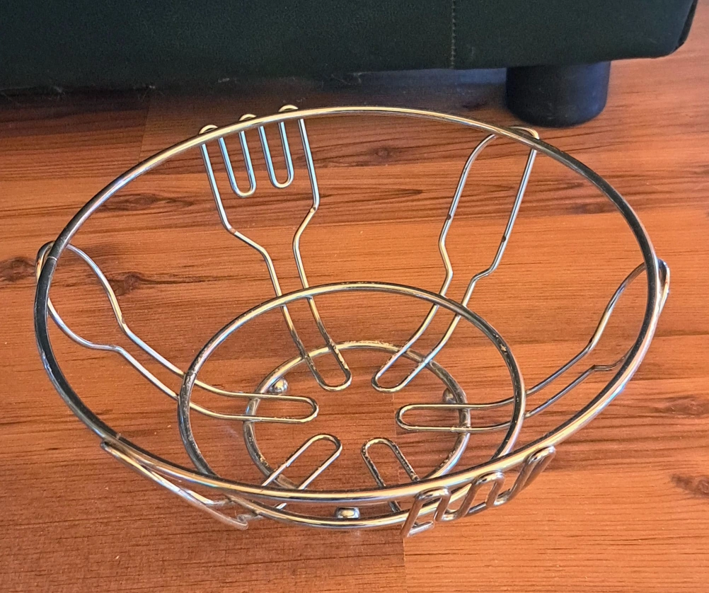 Selling a metal fruit bowl! It's in great shape and ready to hold your favourite fruits. The design is unique and adds a touch of charm to any kitchen. It's a great piece for any home!