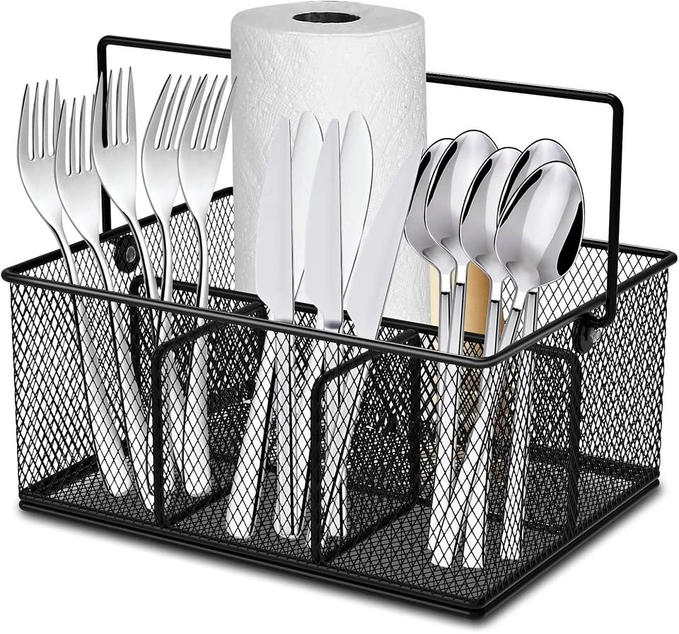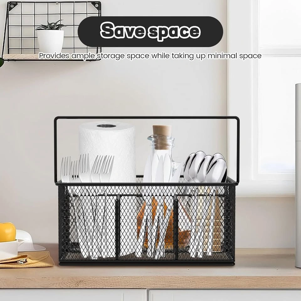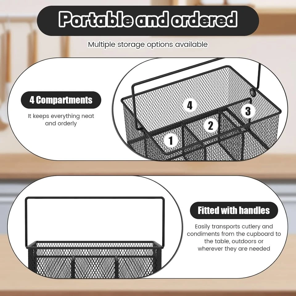 Metal Mesh Utensil Basket with 4 Compartments & Handle