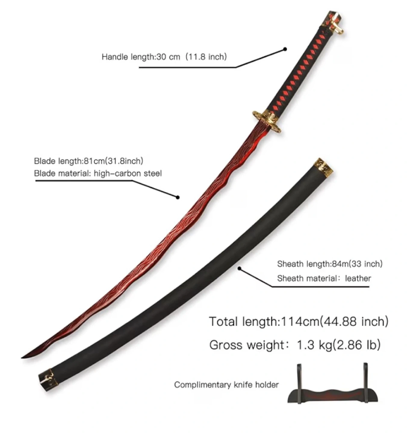 New Cosplay Prop Katana-Wolf Cosplay Sword Metal Red Blade