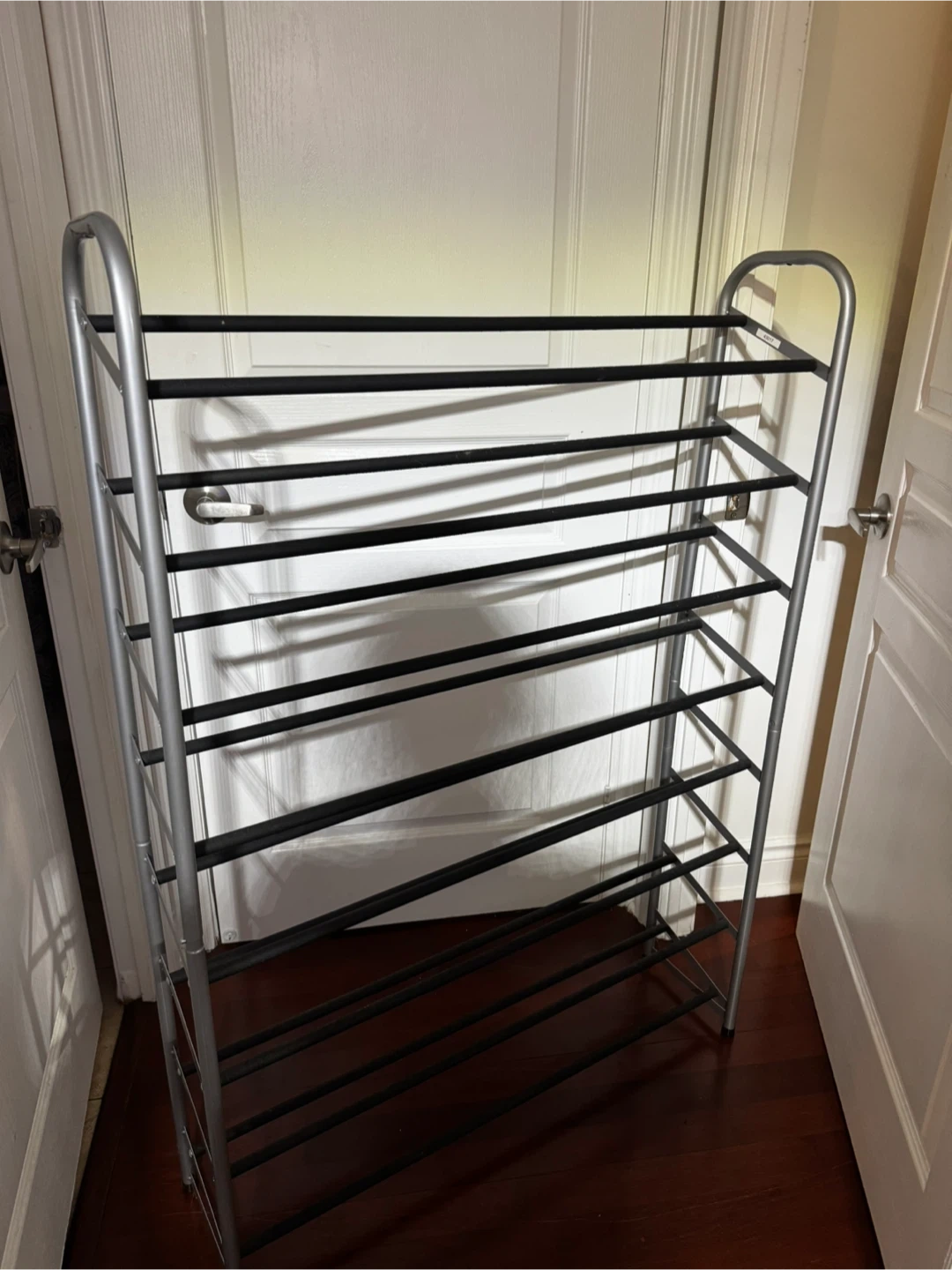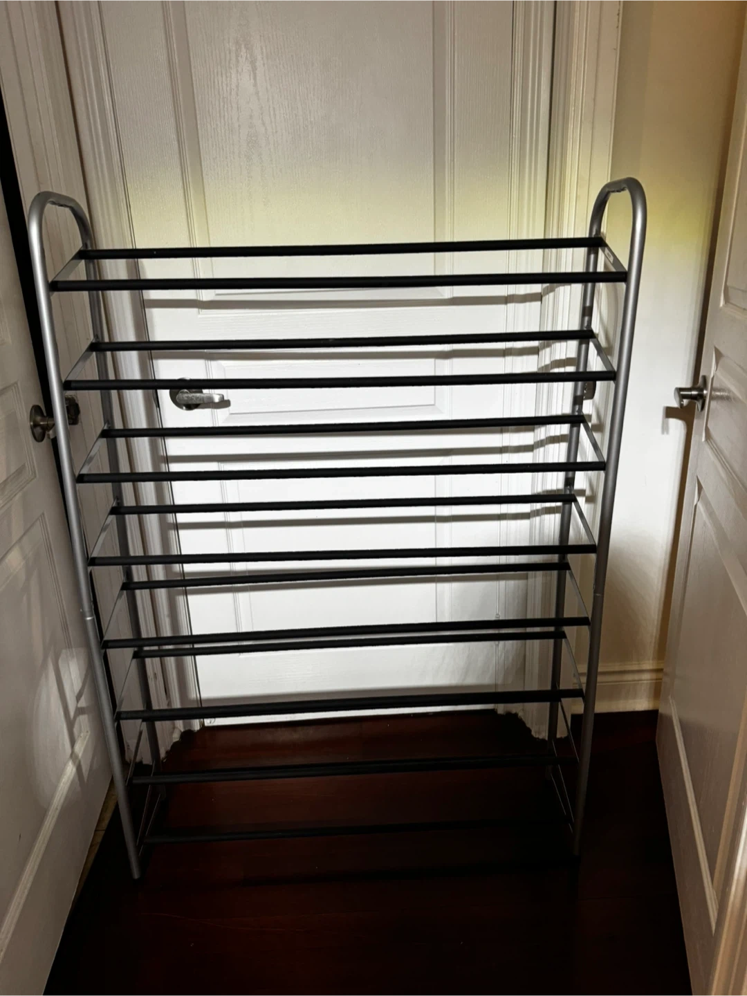 621Metal 8 Tier Shoe Rack that's perfect for keeping your entryway or closet organized! It's in great condition and ready for a new home. It has multiple tiers for storing lots of shoes, boots, or even accessories. Perfect for any home! 40 pairs 35x10 H 50 inches $30 firm price Yonge and finch area
