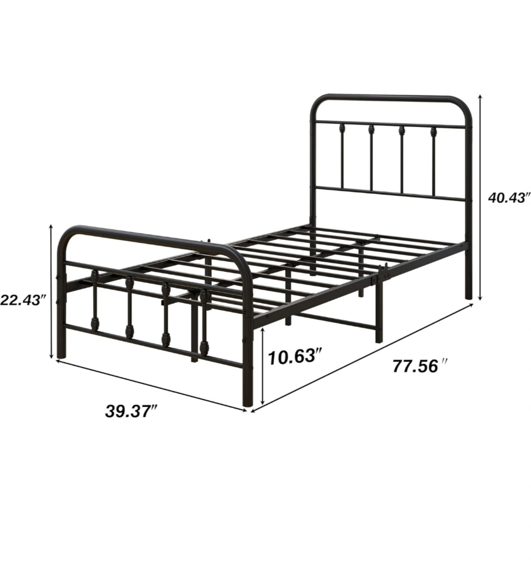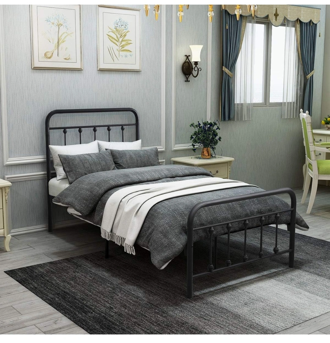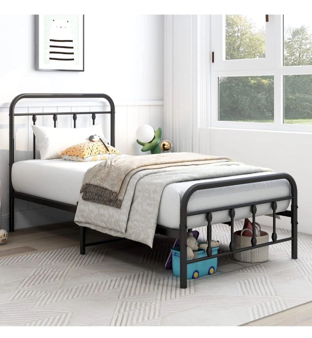 Twin Platform Bed Frame with Vintage Headboard and Footboard Metal Single Bed Frame Steel Slats Support Mattress Bed Bases, Black Brand new